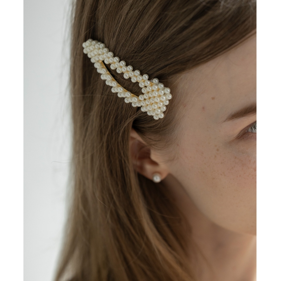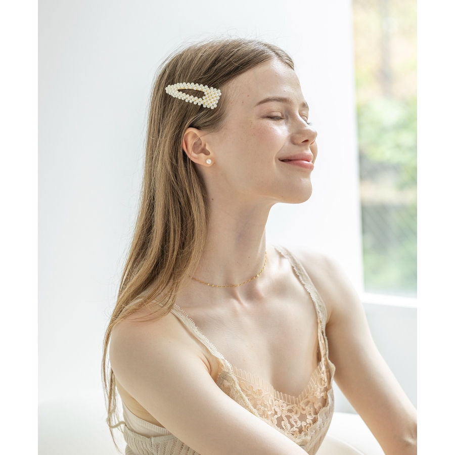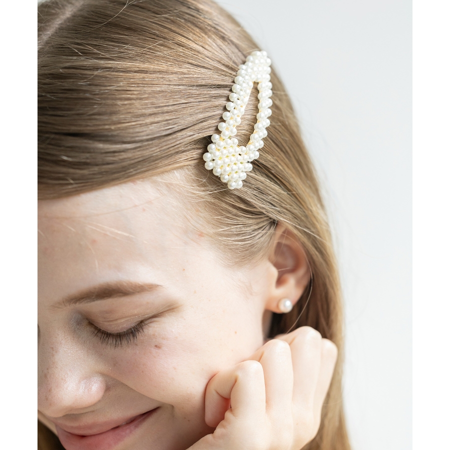 上品なツヤ感のフェイクパールが、まとめ髪やハーフアップのワンポイントにぴったり。