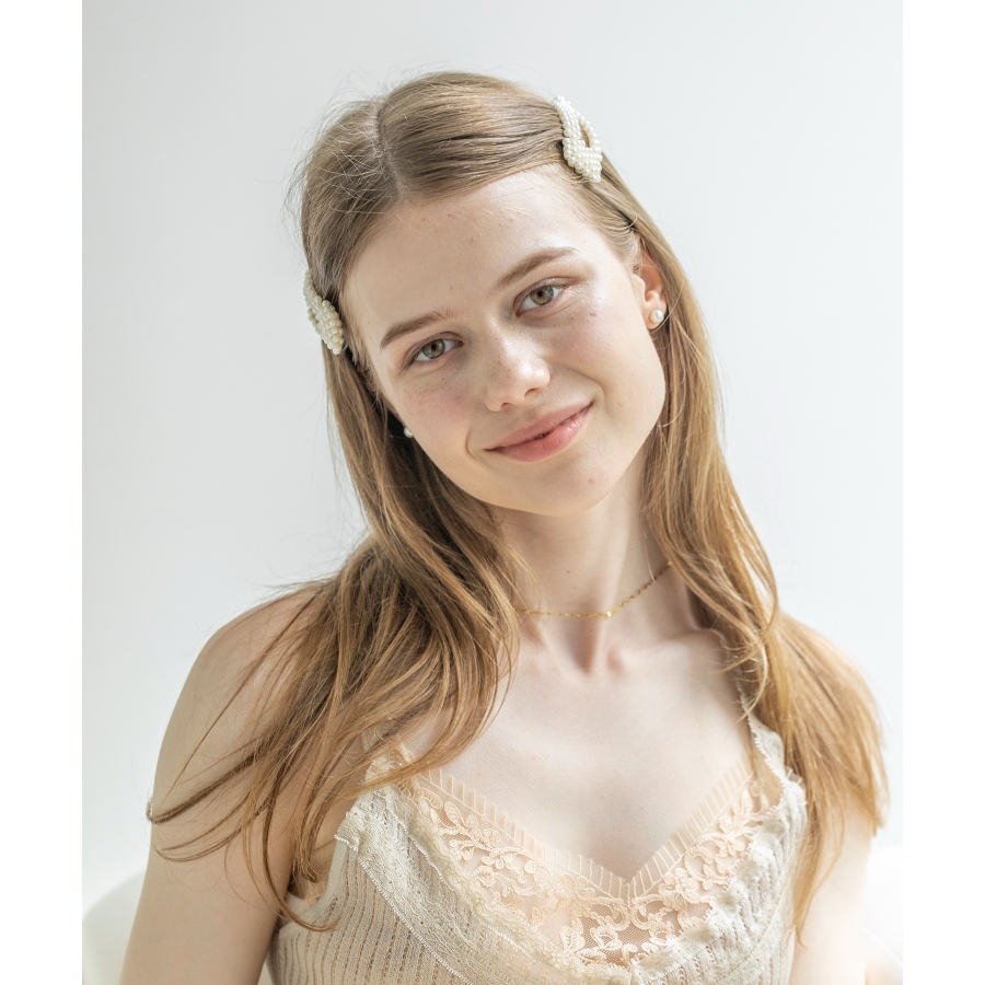 パールデザインのヘアバレッタが2点セットで登場。