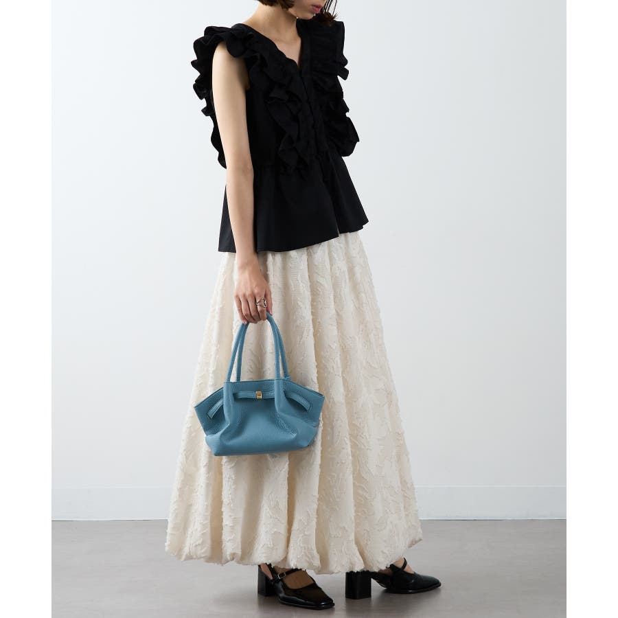 洗練されたフォルムにアクセントを加えるベルトディテールが魅力の、上品さとモード感を兼ね備えた一品。