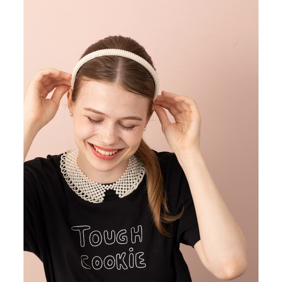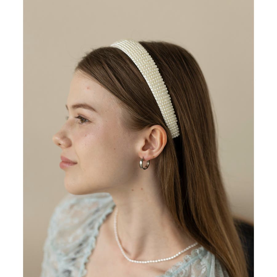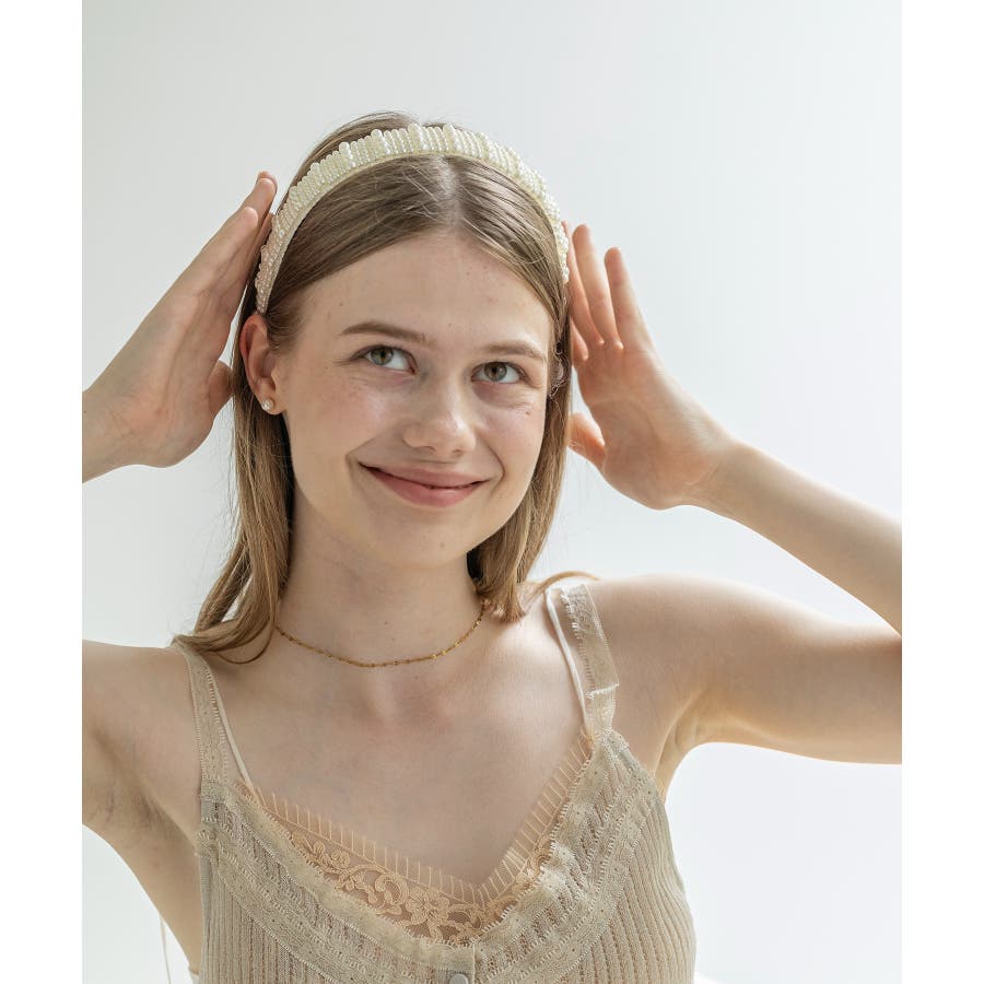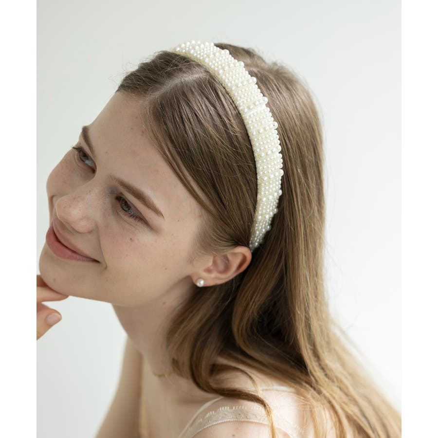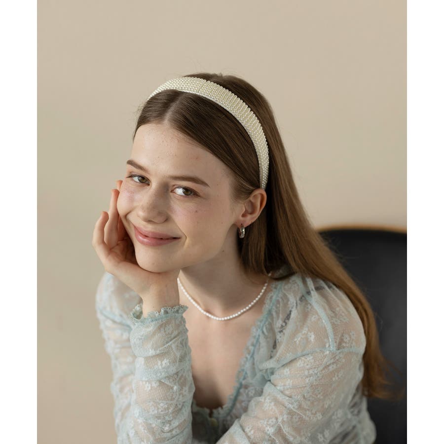 パールをあしらったカチューシャがヘアスタイルを華やかに演出
