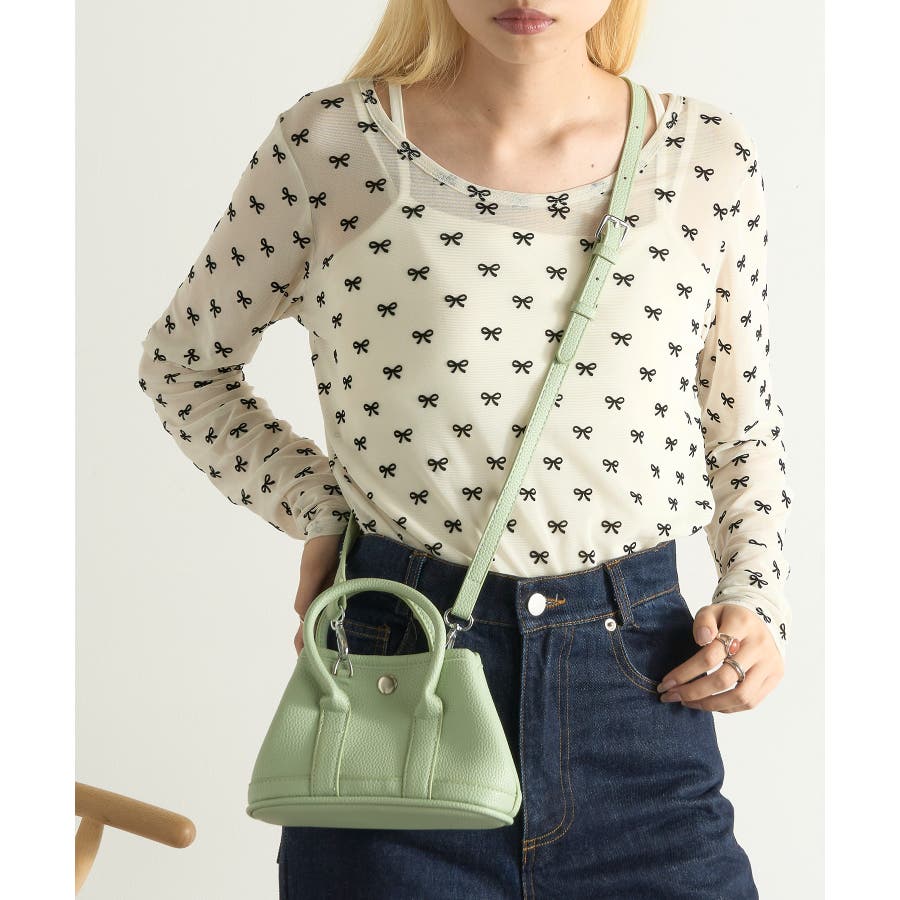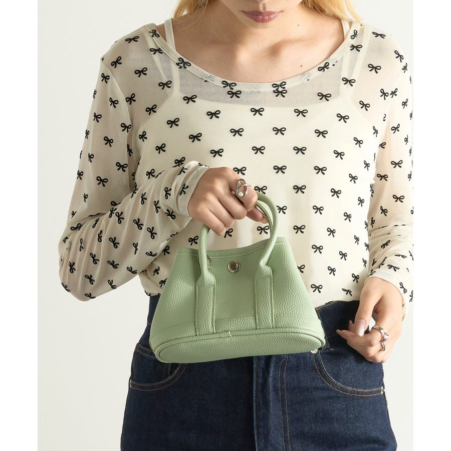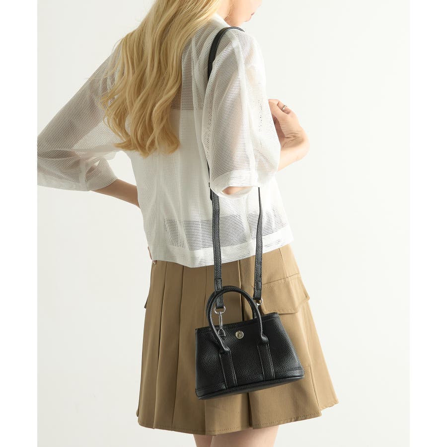 ミニサイズでコンパクト。財布、スマートフォン、リップなど、必要最低限のアイテムを収納可能。