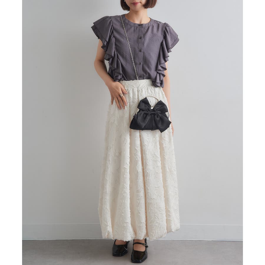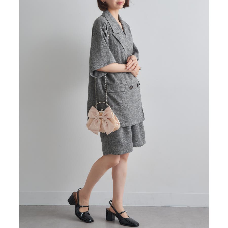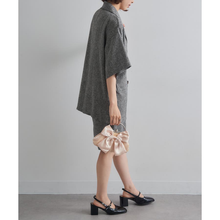 フロントにあしらわれたリボンが可愛らしさと女性らしさを引き立てます。シンプルながら華やかな印象に。