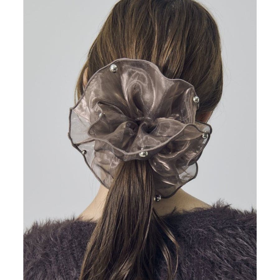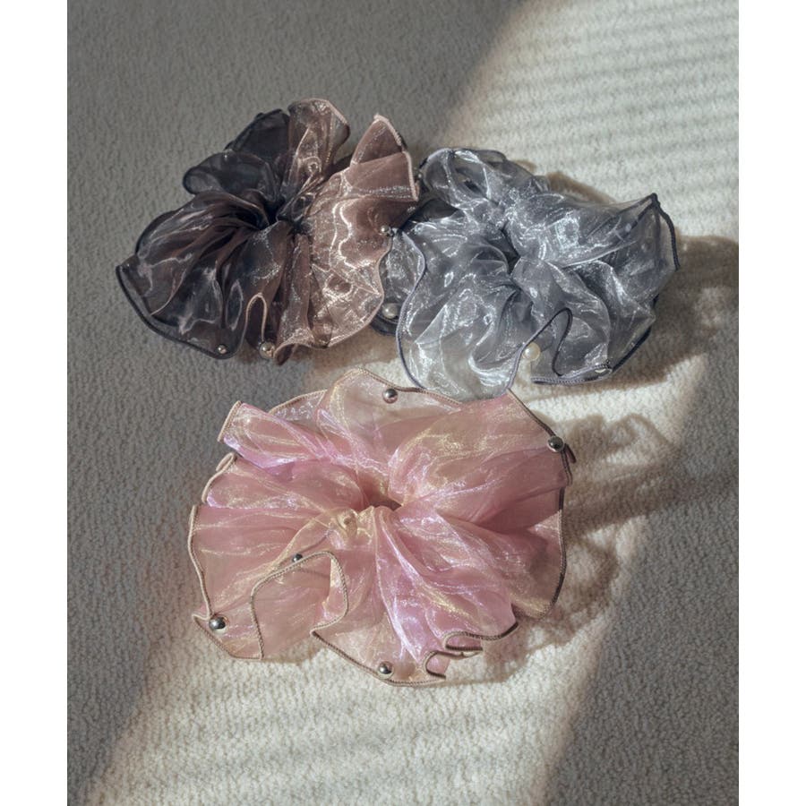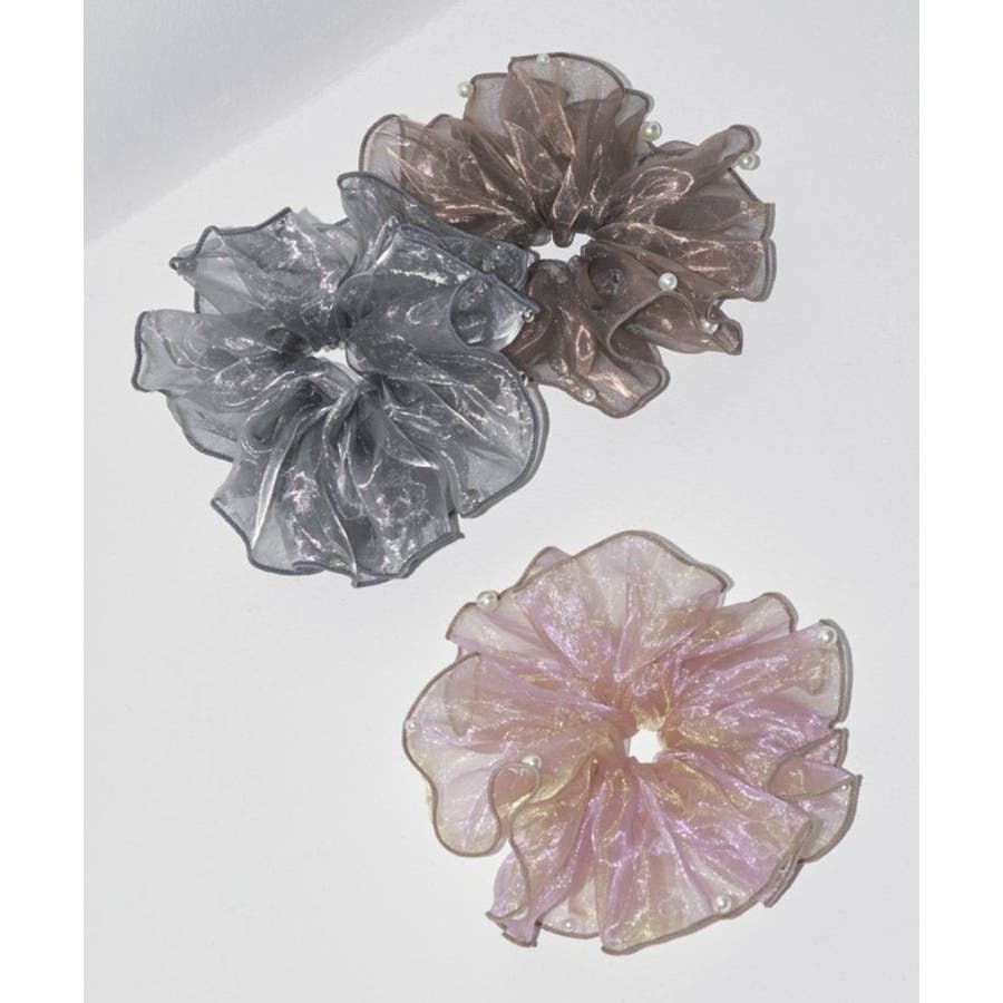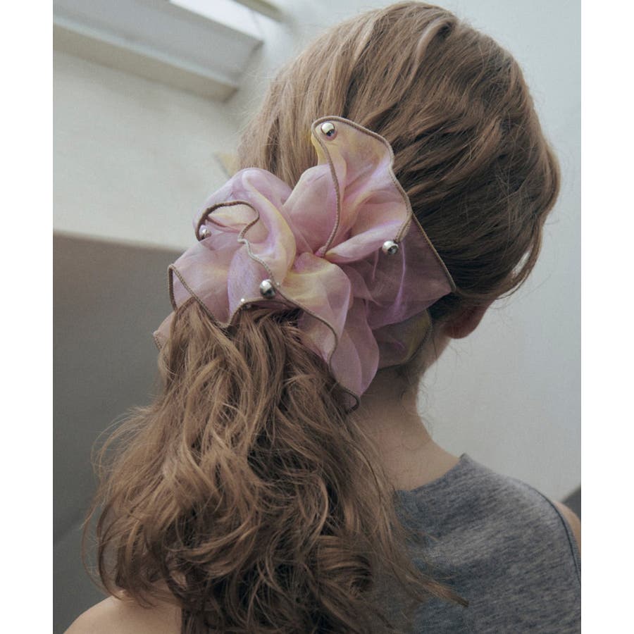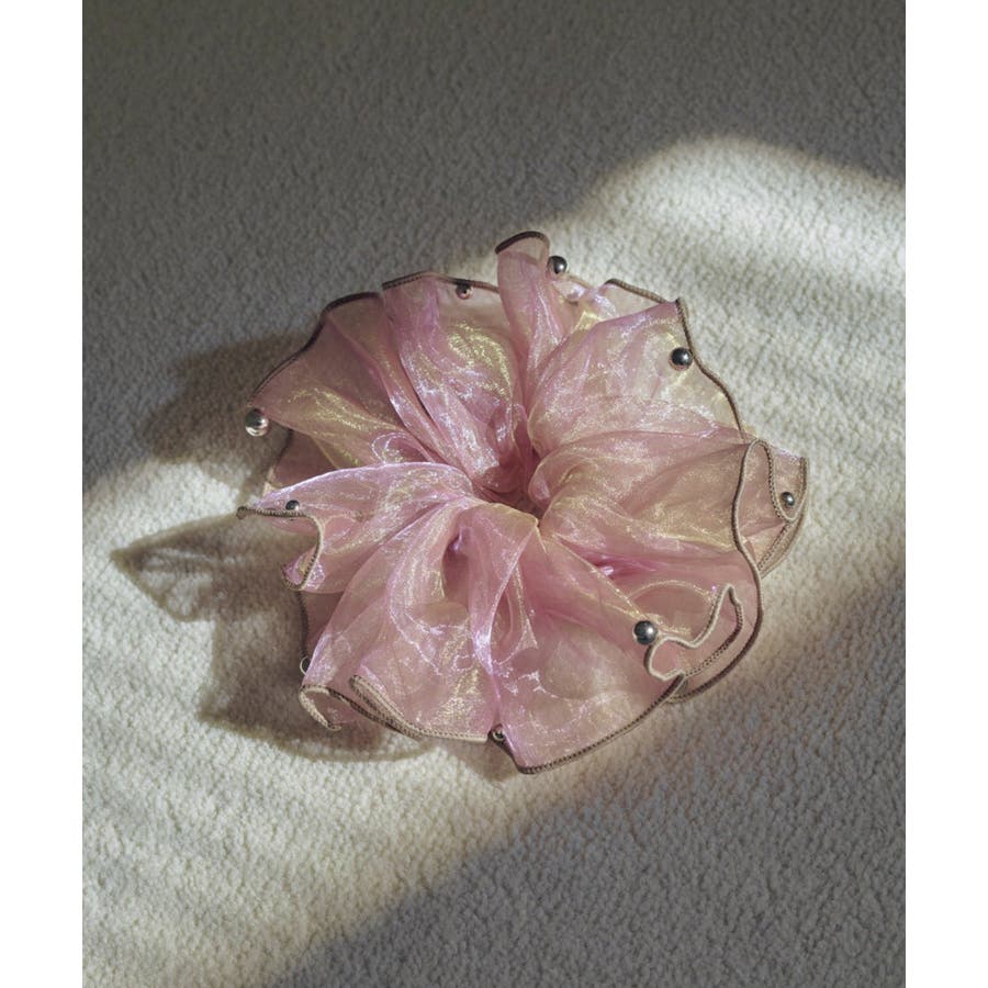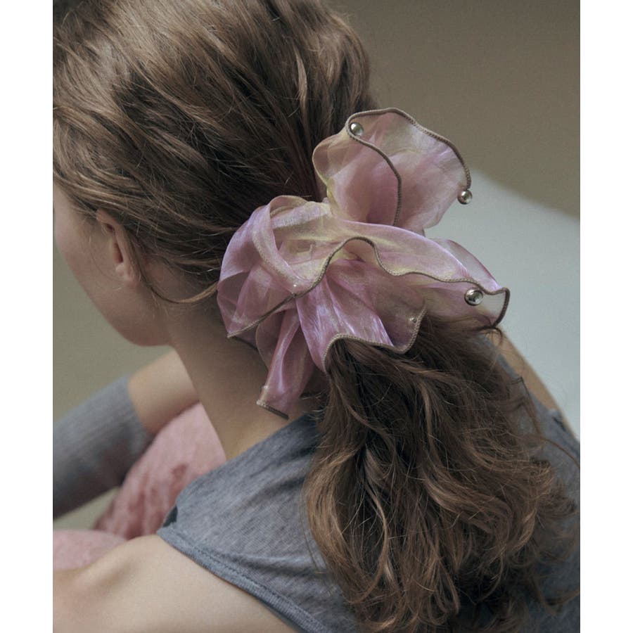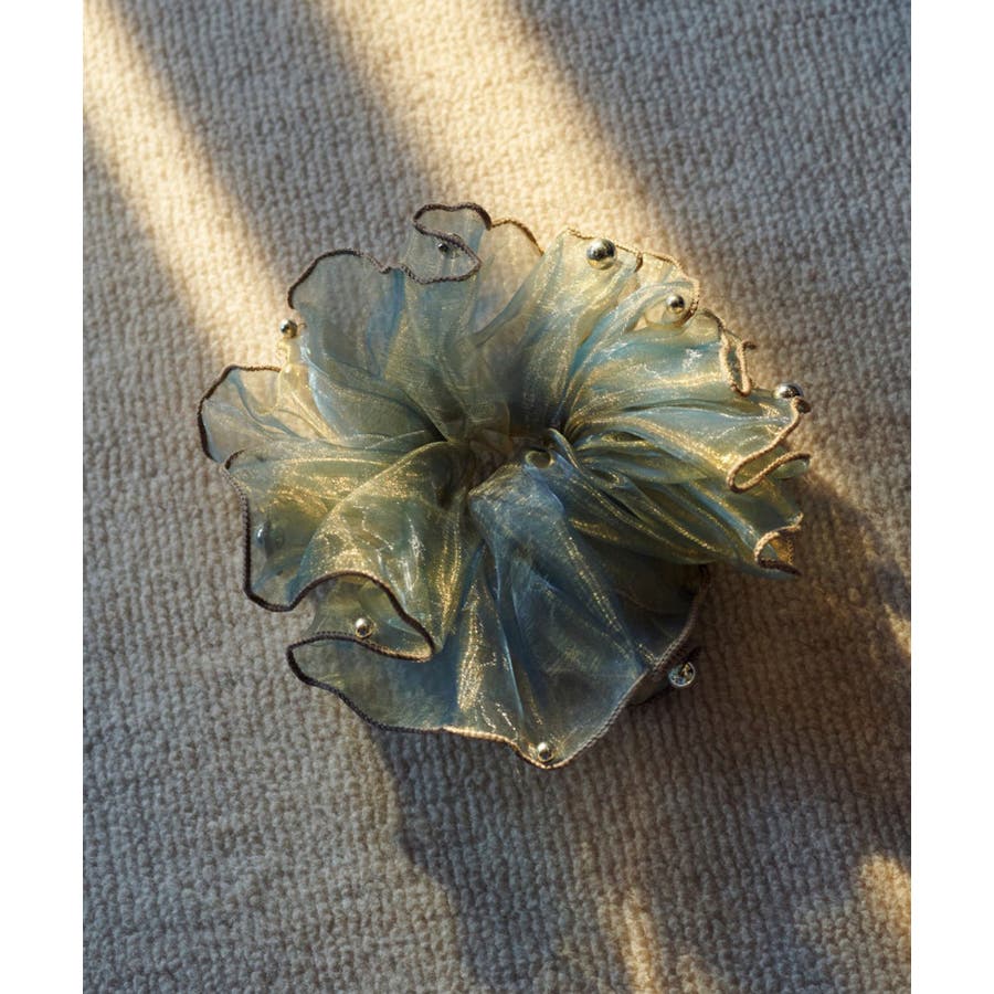 ラメを織り込んだ、シアー感のあるオーガンジー素材を使用したシュシュ。