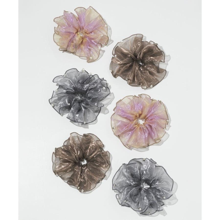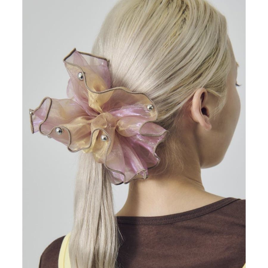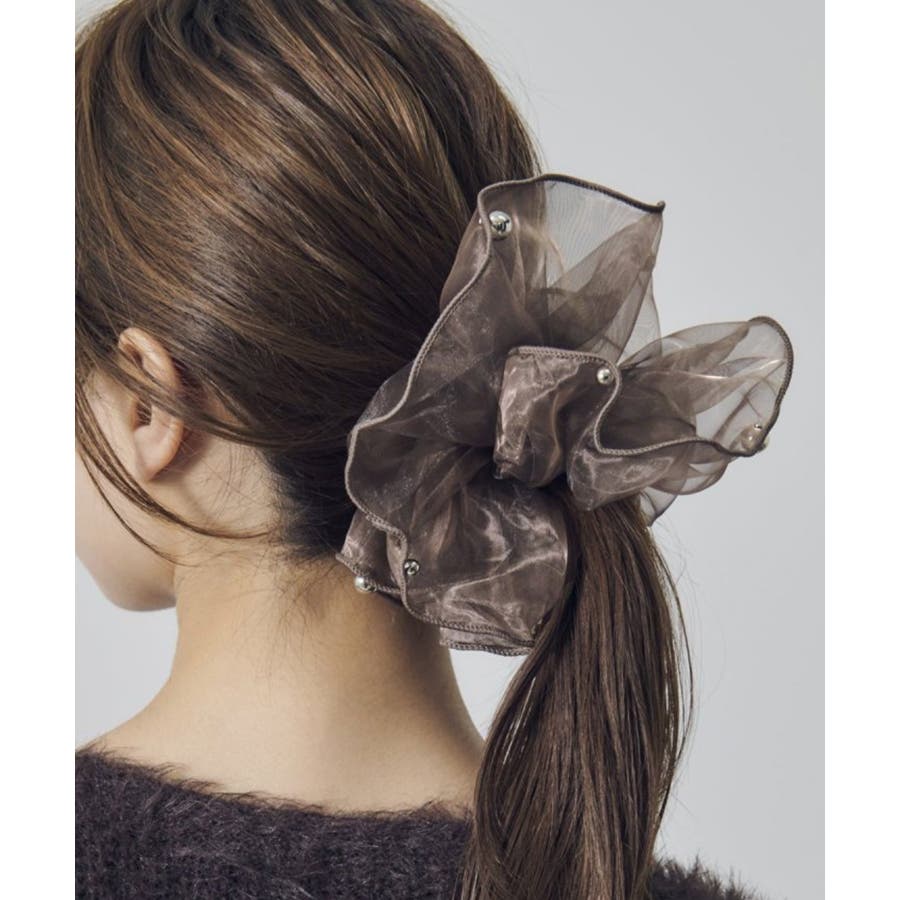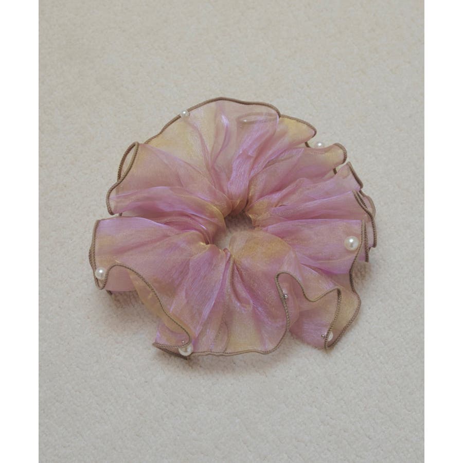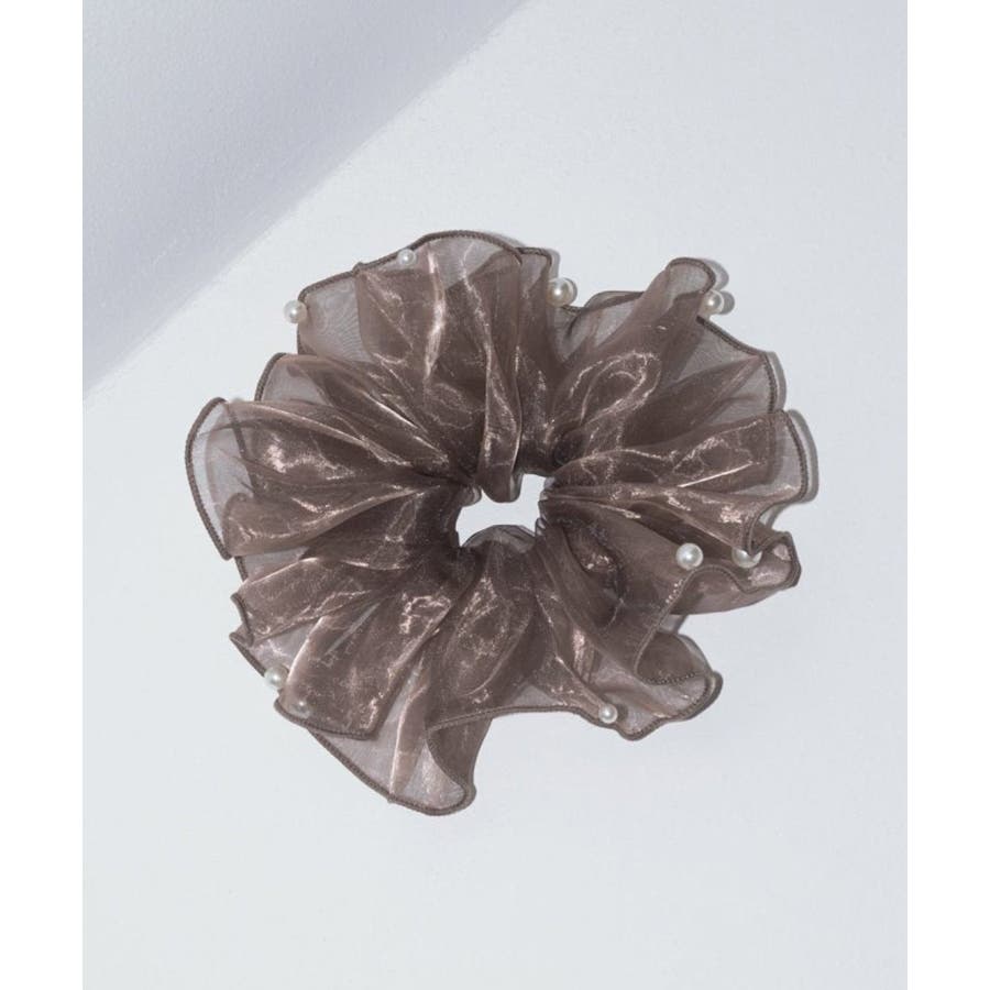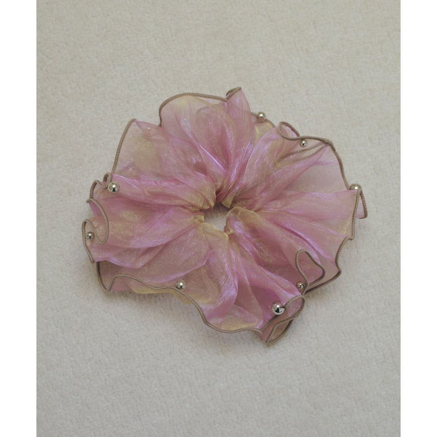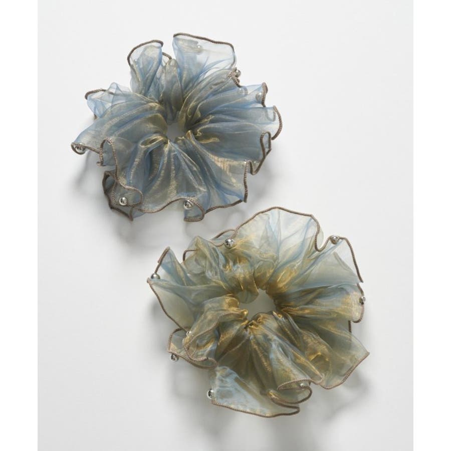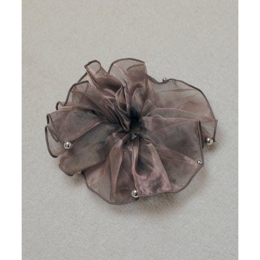 ラメを織り込んだ、シアー感のあるオーガンジー素材を使用したシュシュ。