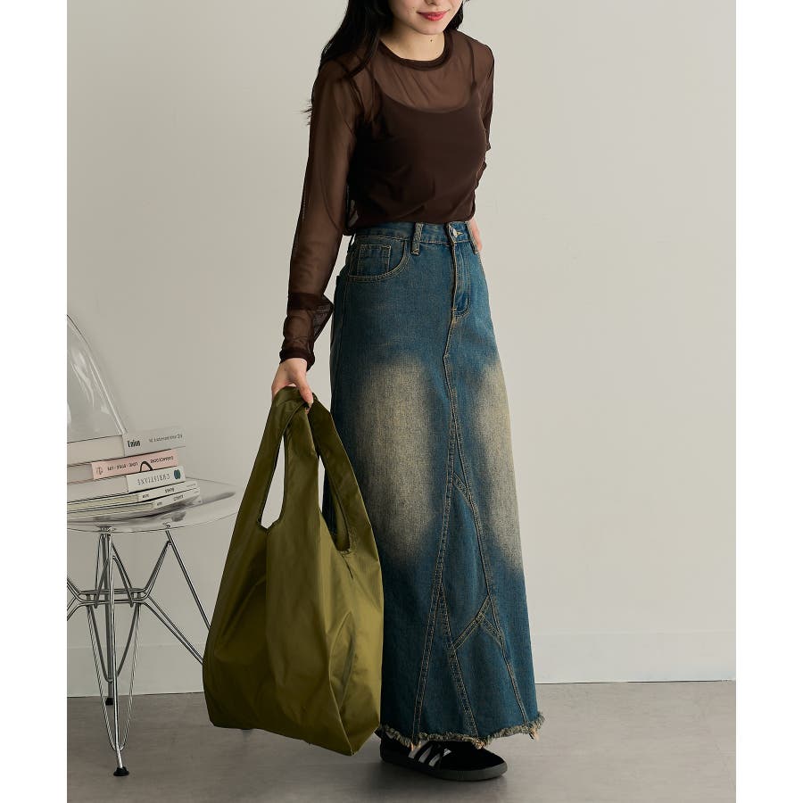 ・シアートップスやバルーンスカートなどトレンドライクなアイテムと合わせた旬のコーディネート。