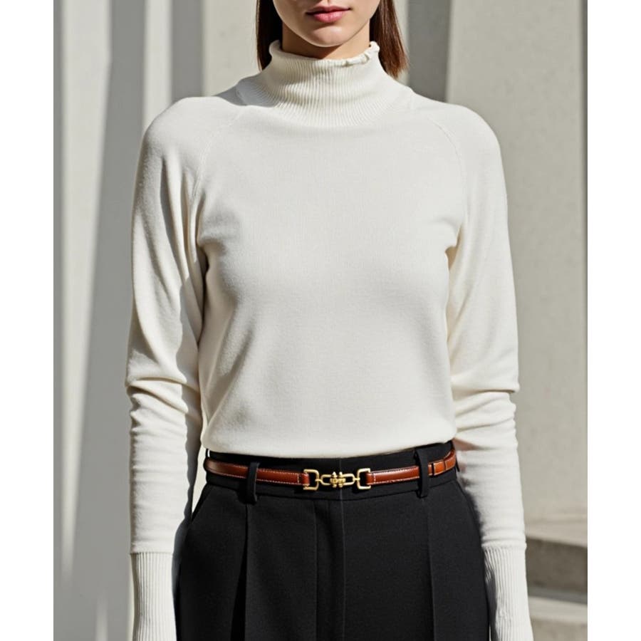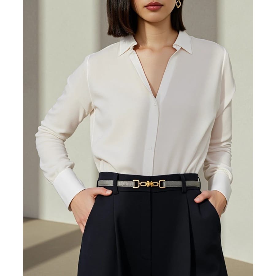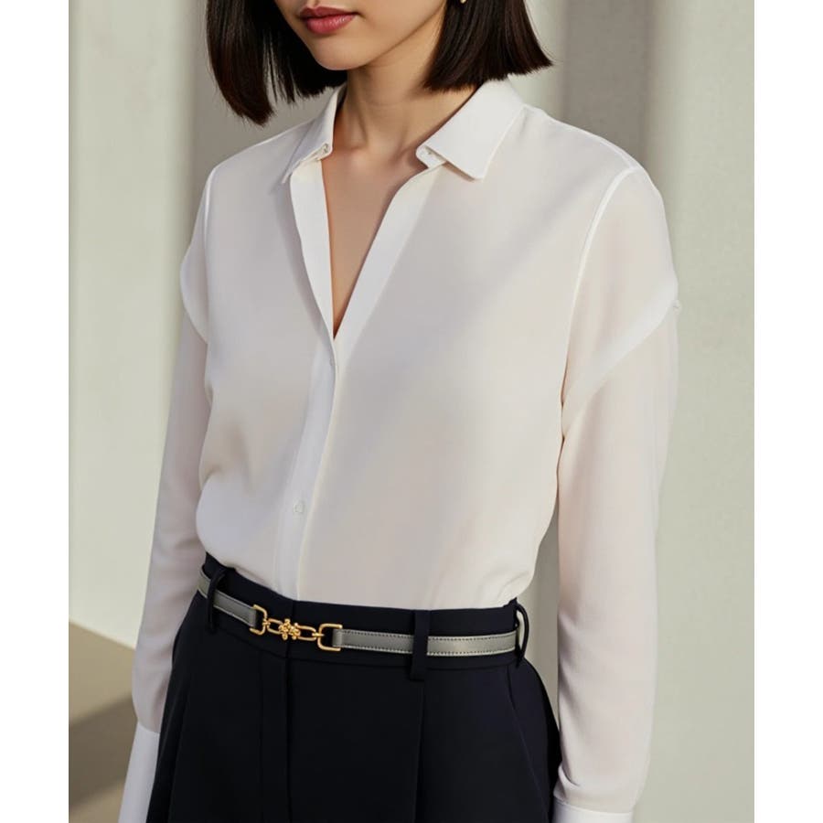 細ベルトならではの華奢な印象が女性らしさを引き立て、デイリーからフォーマルまで幅広く活躍。