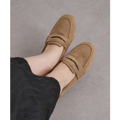 【ダークブラウン】【SETUP7】スエード調コインフラットローファー KNF