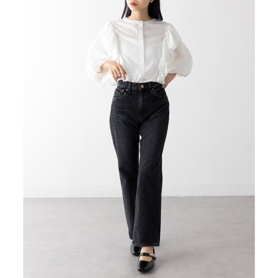 ・デニムやイージーパンツ、トラックパンツのようなカジュアルなアイテムと合わせて甘辛mixコーディネートも。