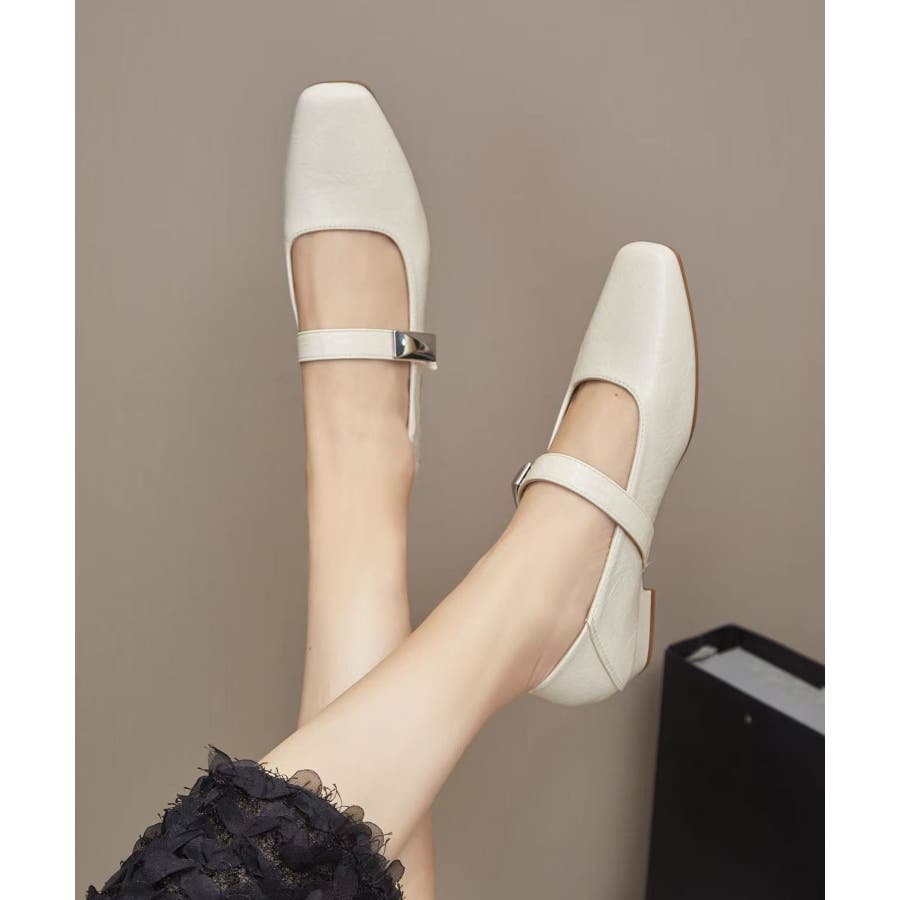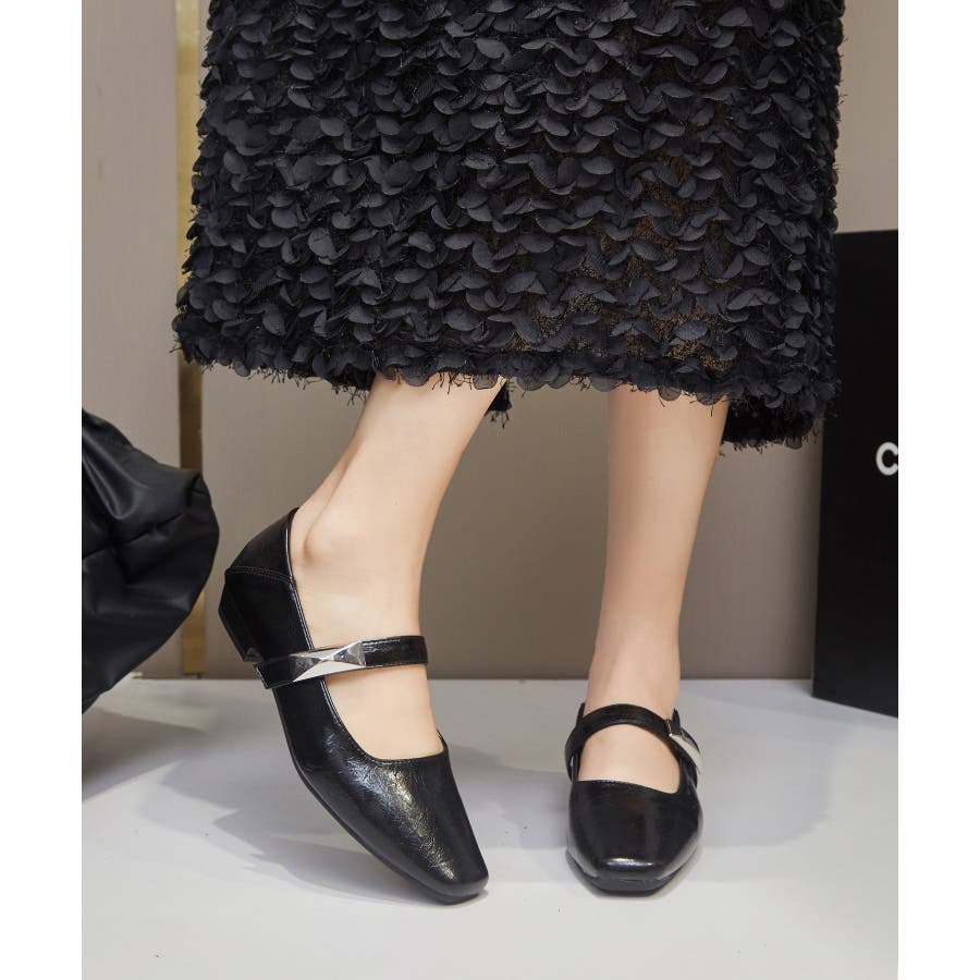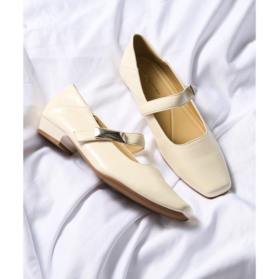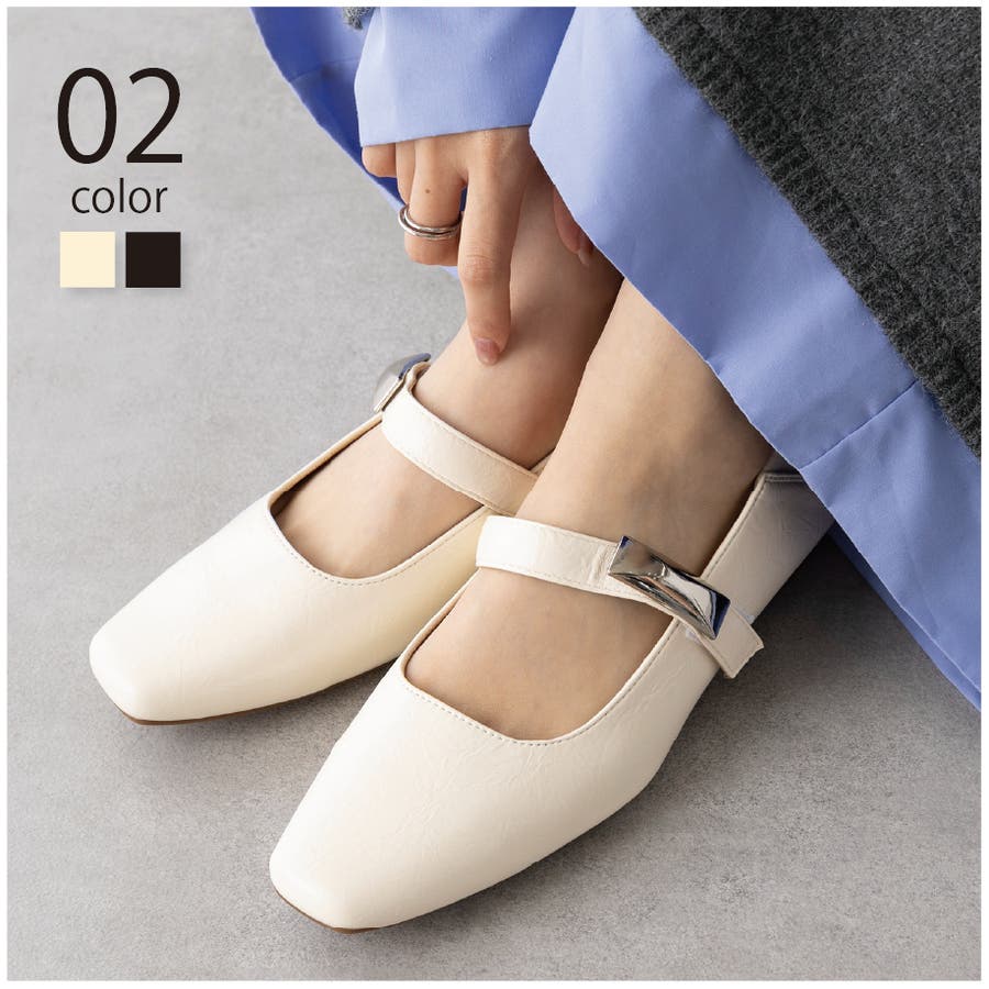 ナチュラルなスクエアトゥでクラシックで清楚な印象を演出。