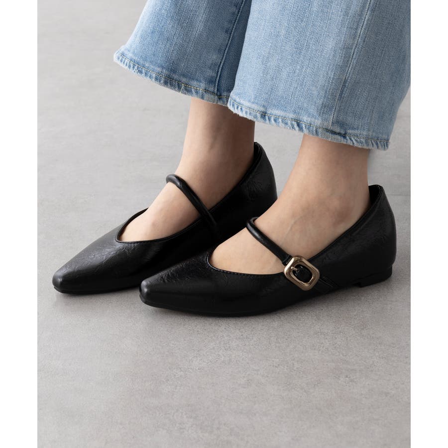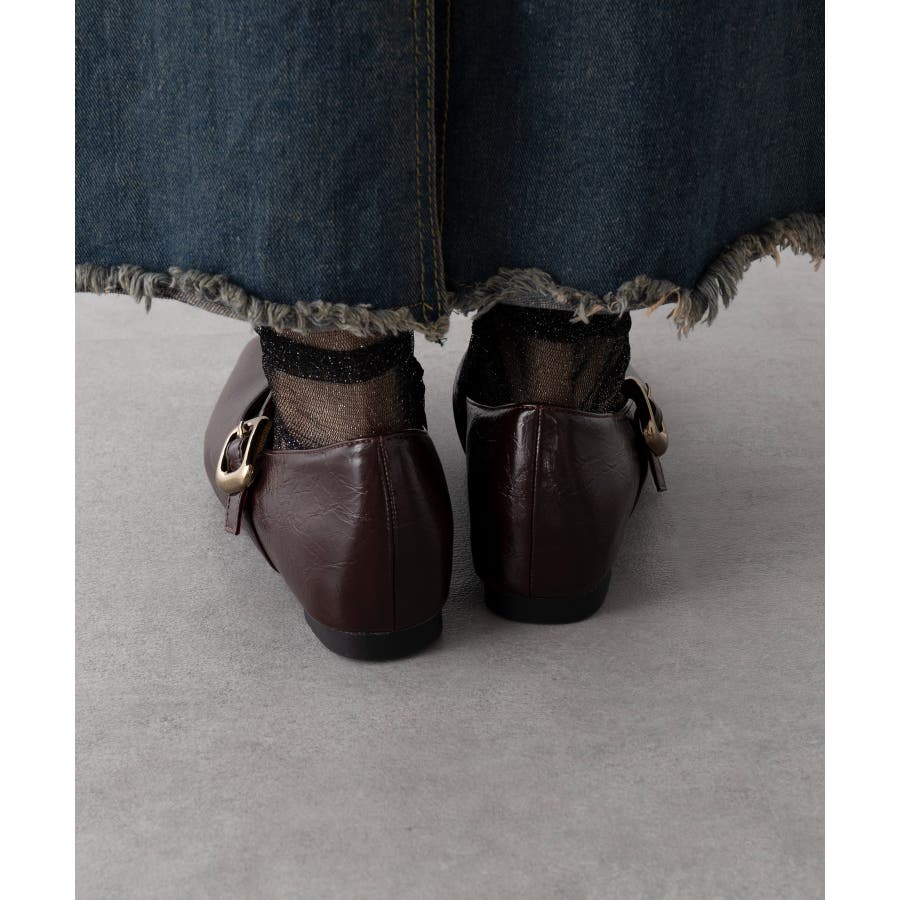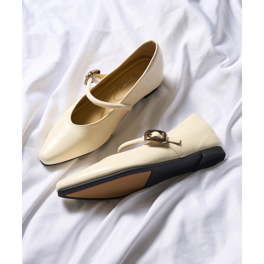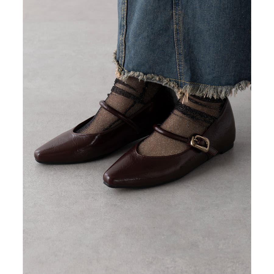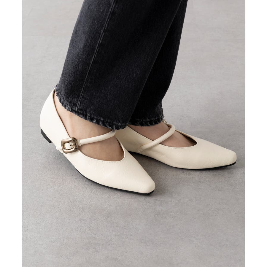 【SETUP7】メタルパーツストラップ Vカットフラットシューズ KNF-TP