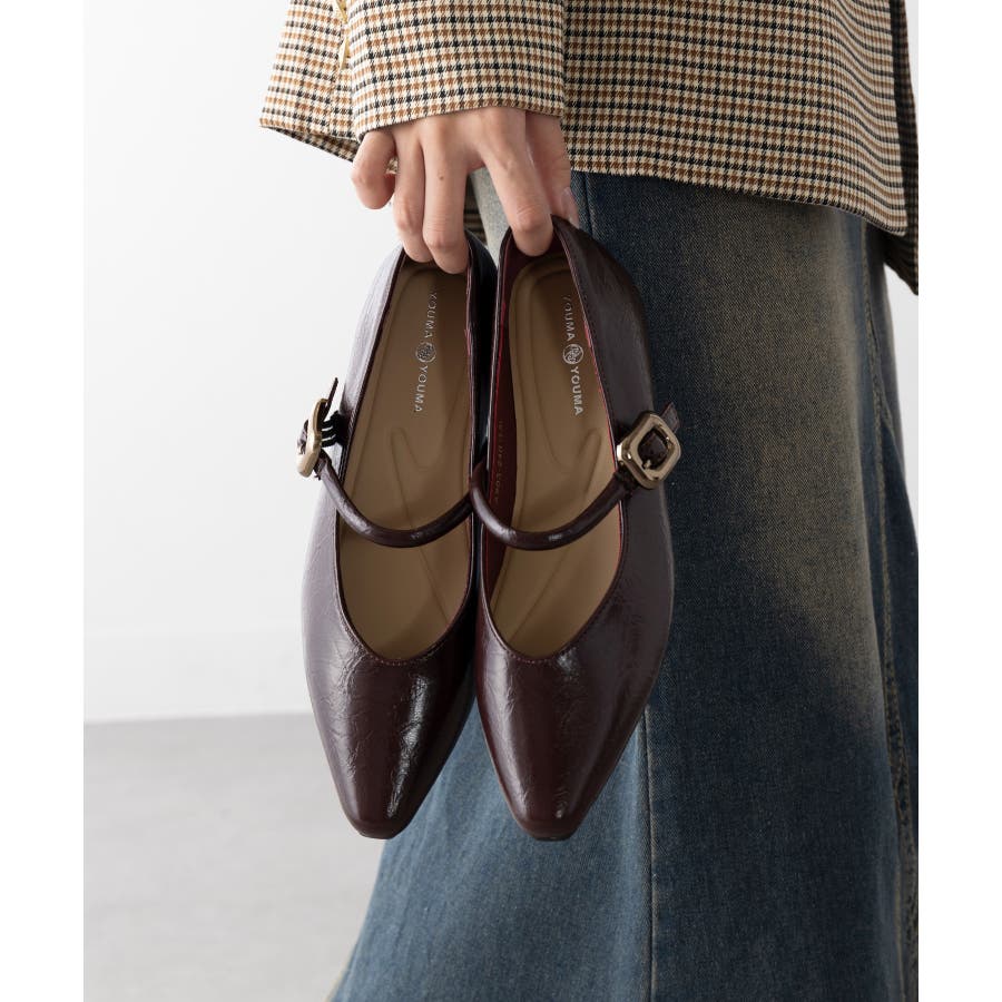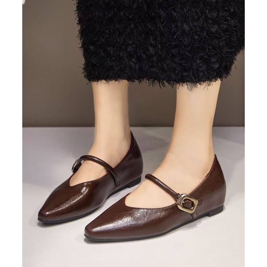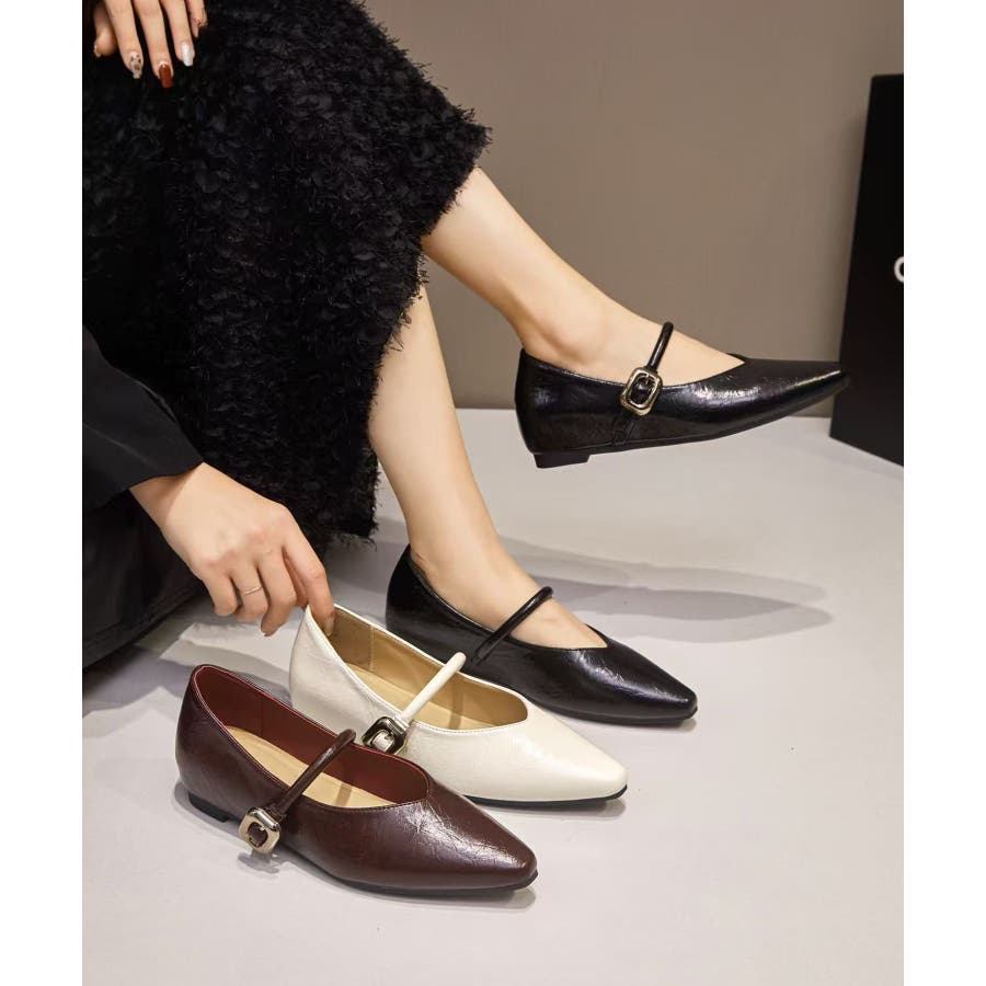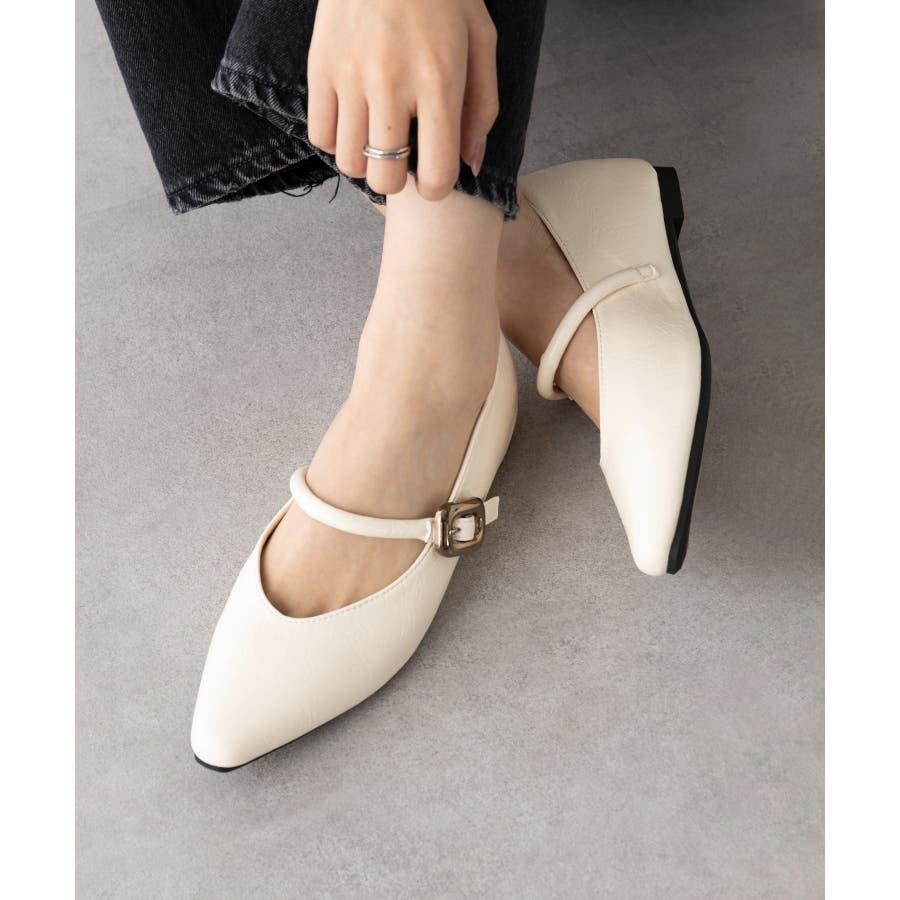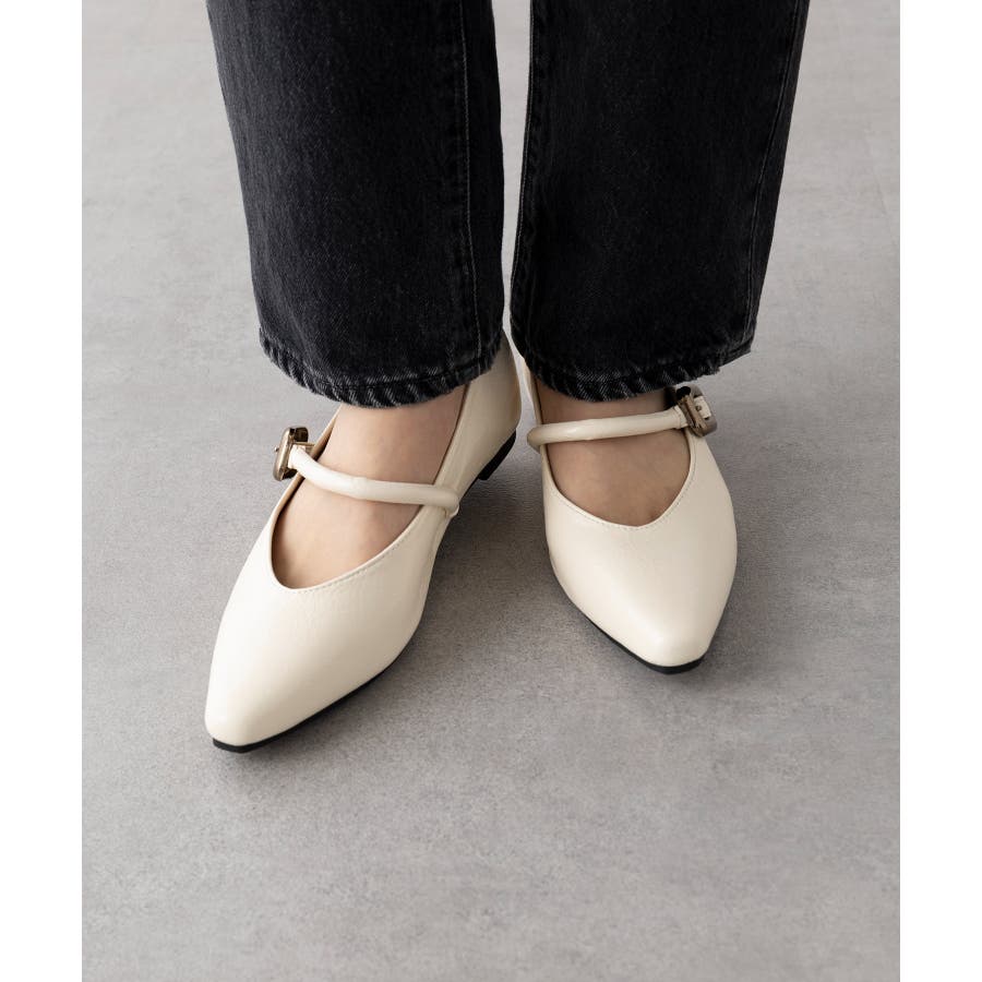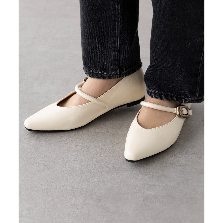 【SETUP7】メタルパーツストラップ Vカットフラットシューズ KNF-TP