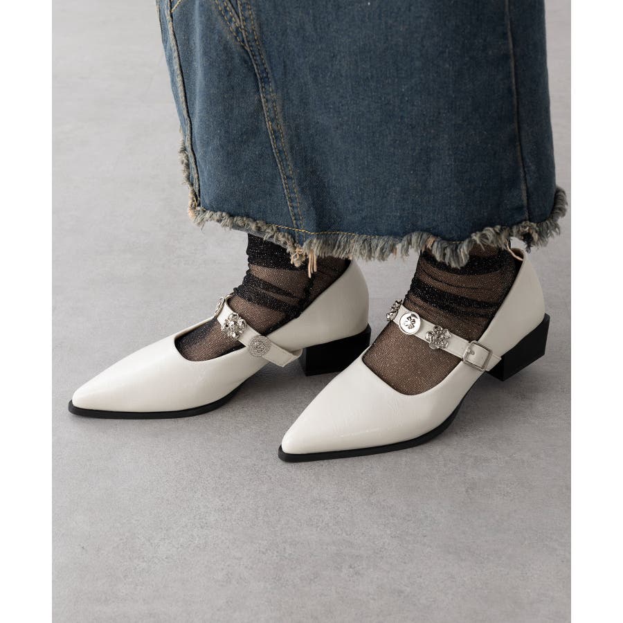 【SETUP7】ヴィンテージボタンモチーフストラップパンプス KNF-TP