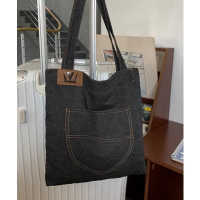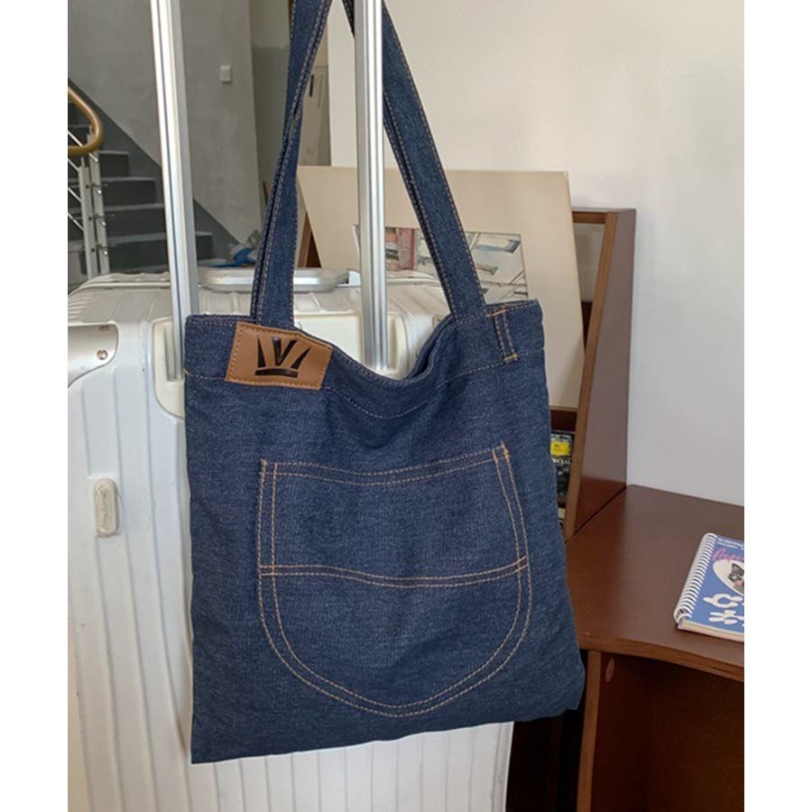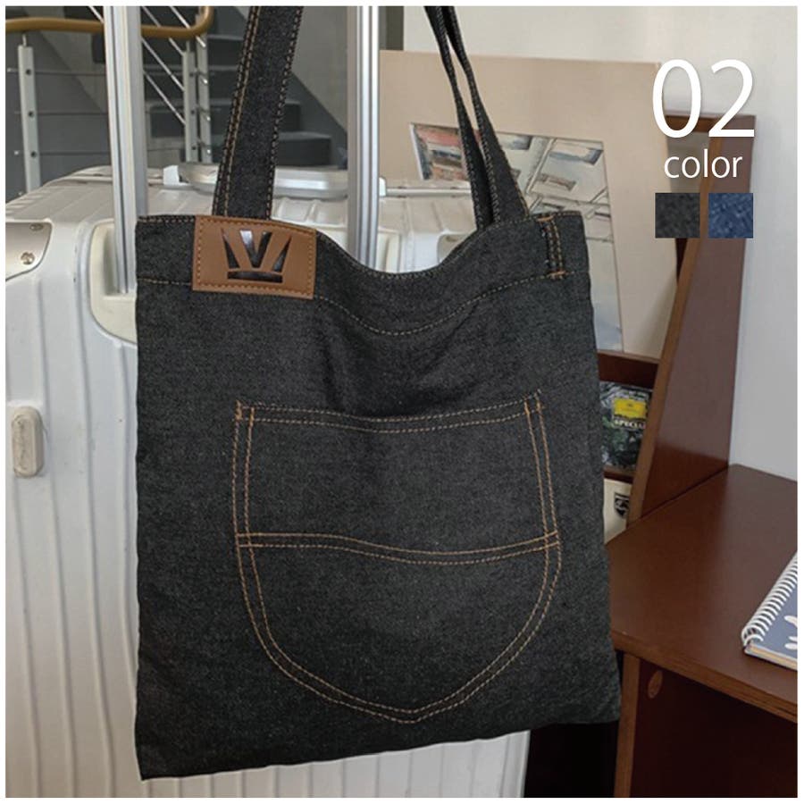ナチュラルに持てる、デニム素材の大容量ショルダートートバッグ