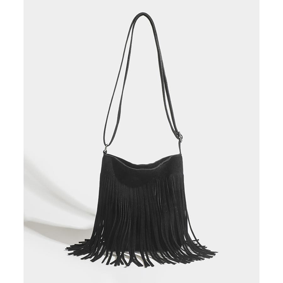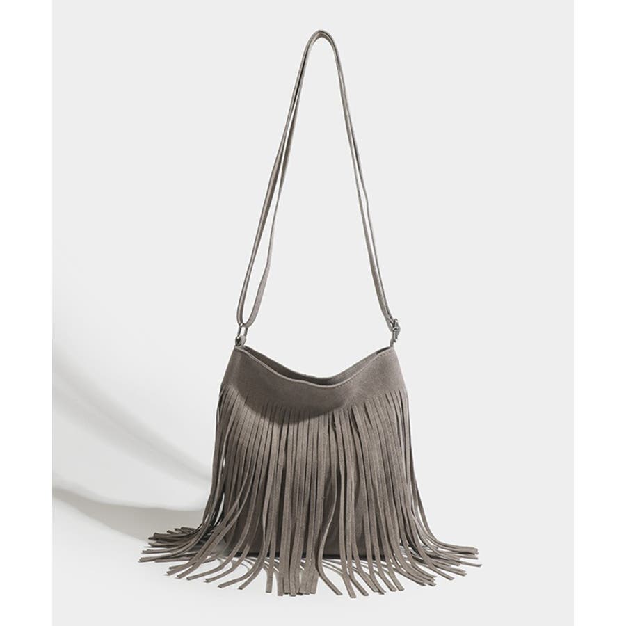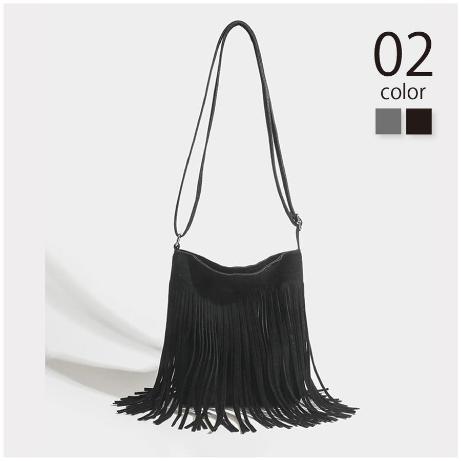 フリンジが目を引く大人の洗練された斜め掛けショルダーバッグ。