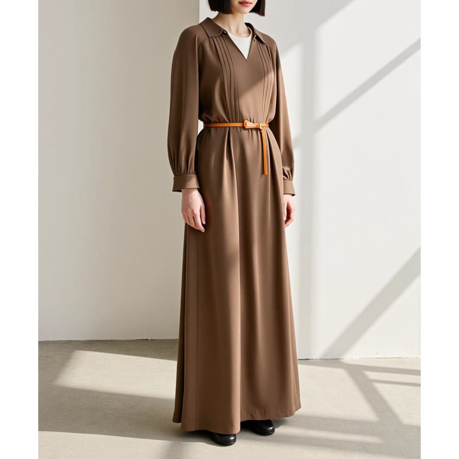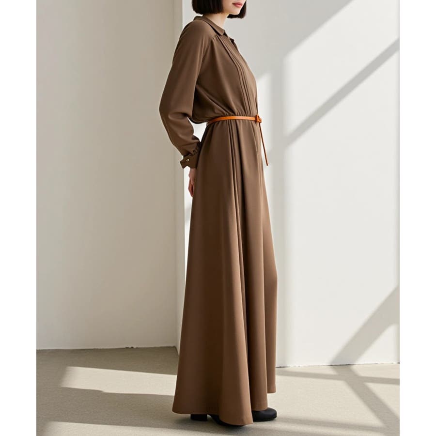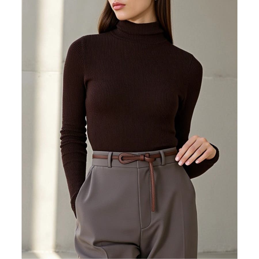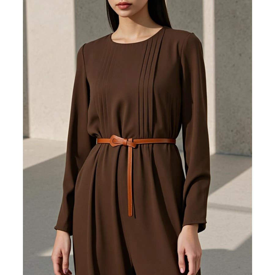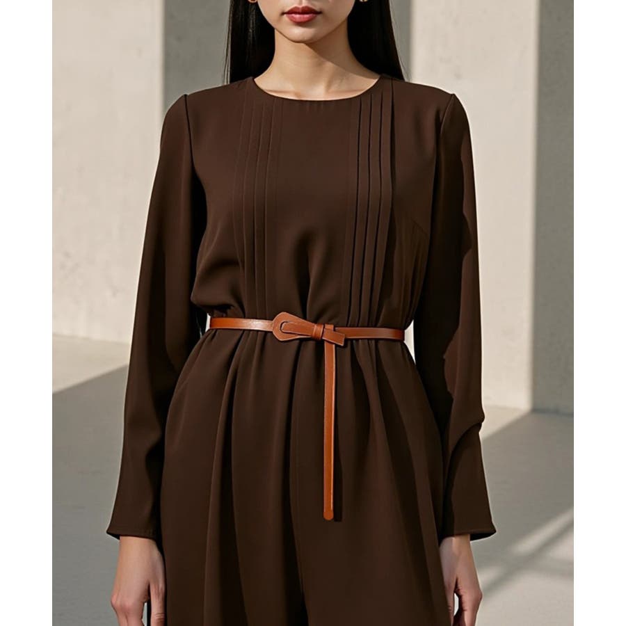 ・ニットワンピースの上からラフに結んで、メリハリのある着こなしに。