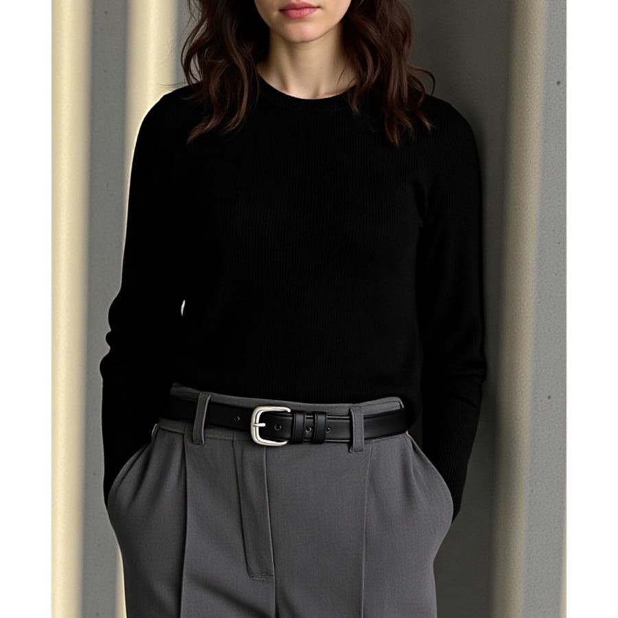 細すぎず太すぎない絶妙な幅感と、上品なシルバーバックルでオン・オフ問わず活躍。