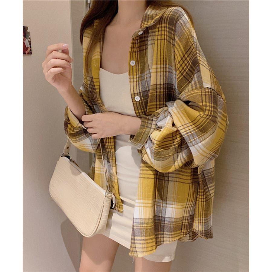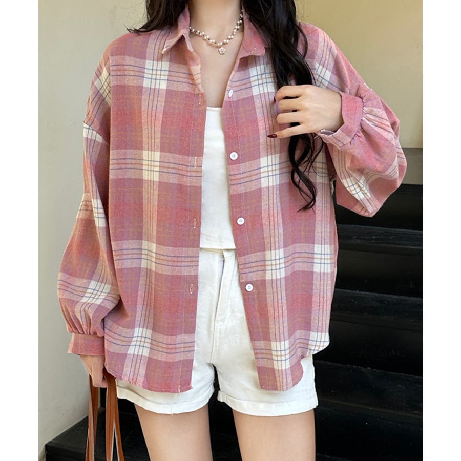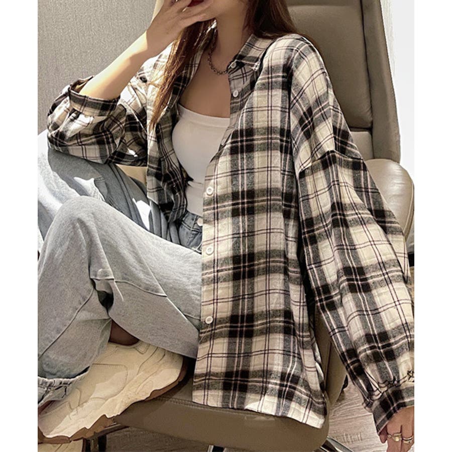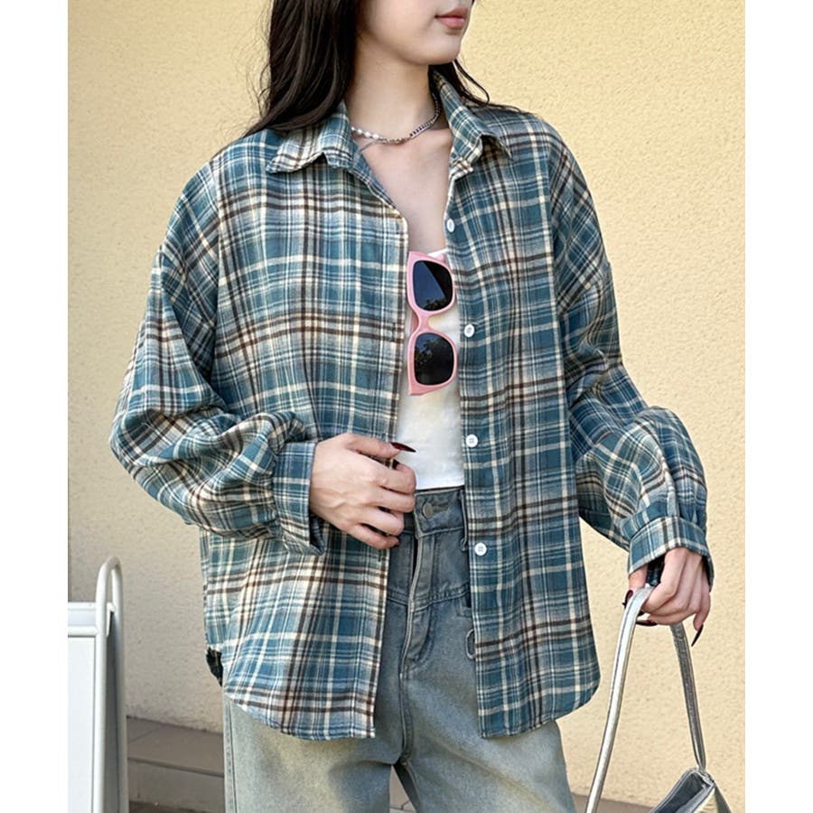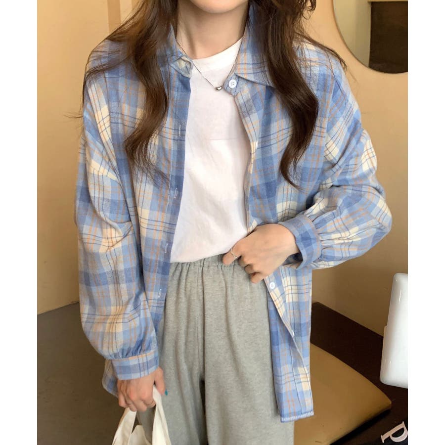 どこか懐かしくて今っぽい、レトロなチェック柄が印象的な長袖シャツ。