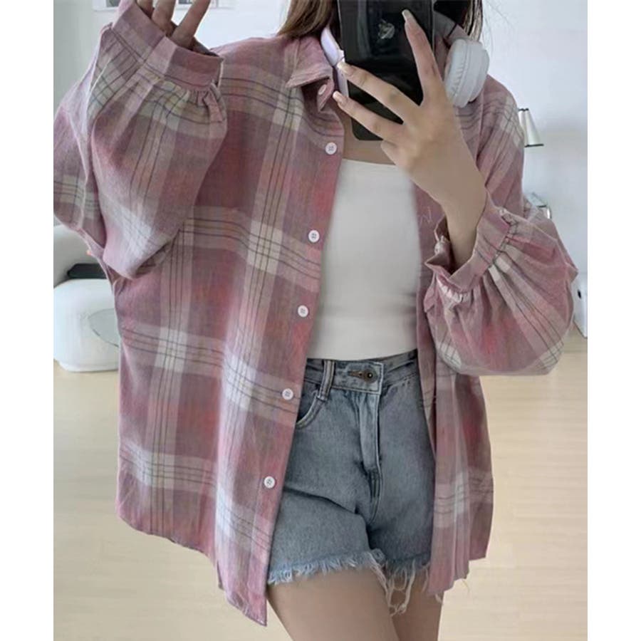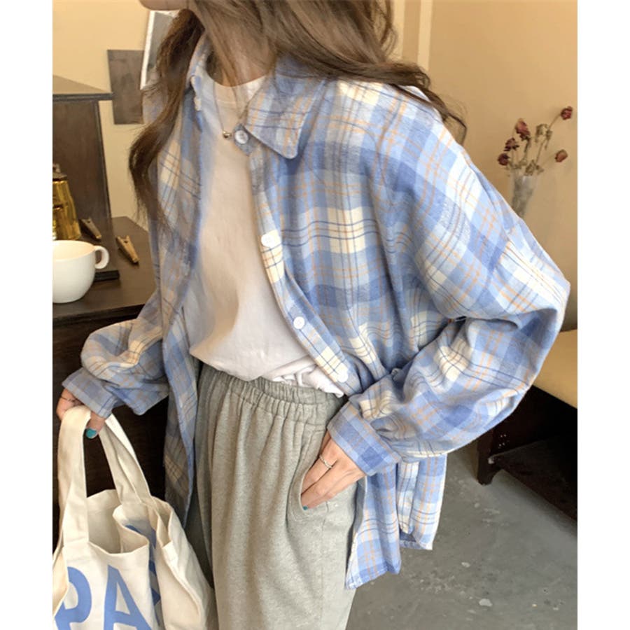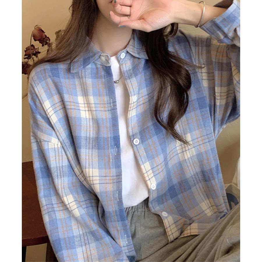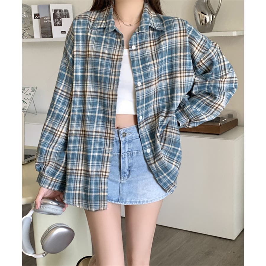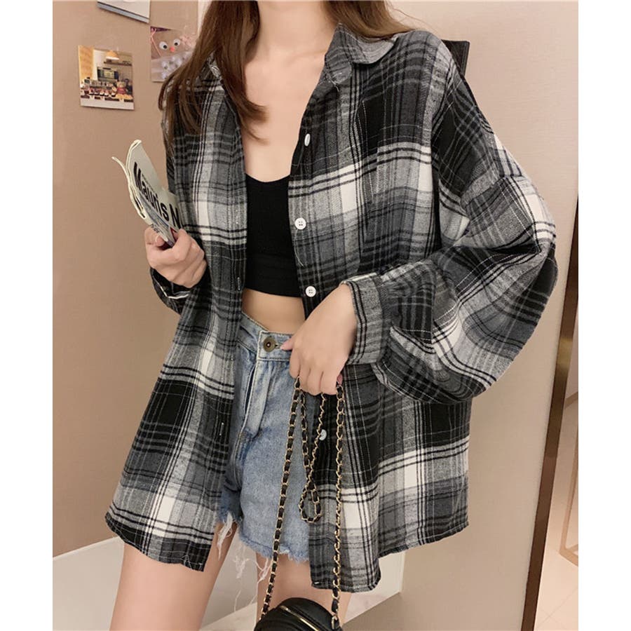 どこか懐かしくて今っぽい、レトロなチェック柄が印象的な長袖シャツ。