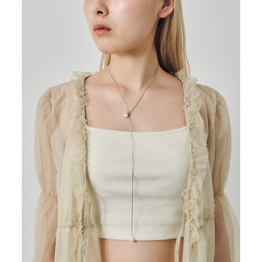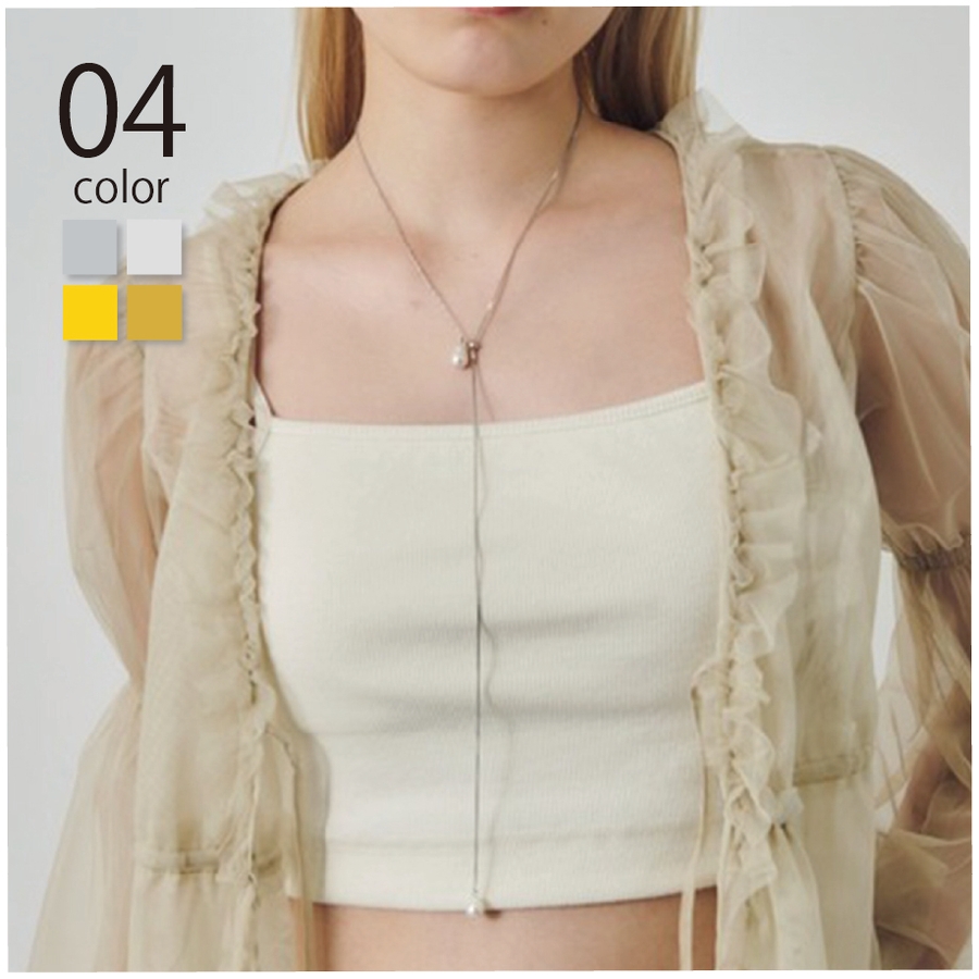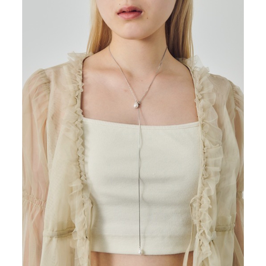スライド仕様のチェーンは長さ調節が自由にでき、チョーカーのように首元をすっきり見せたり、ロングにしてレイヤードを楽しんだりと、スタイリングに合わせたアレンジが可能です。