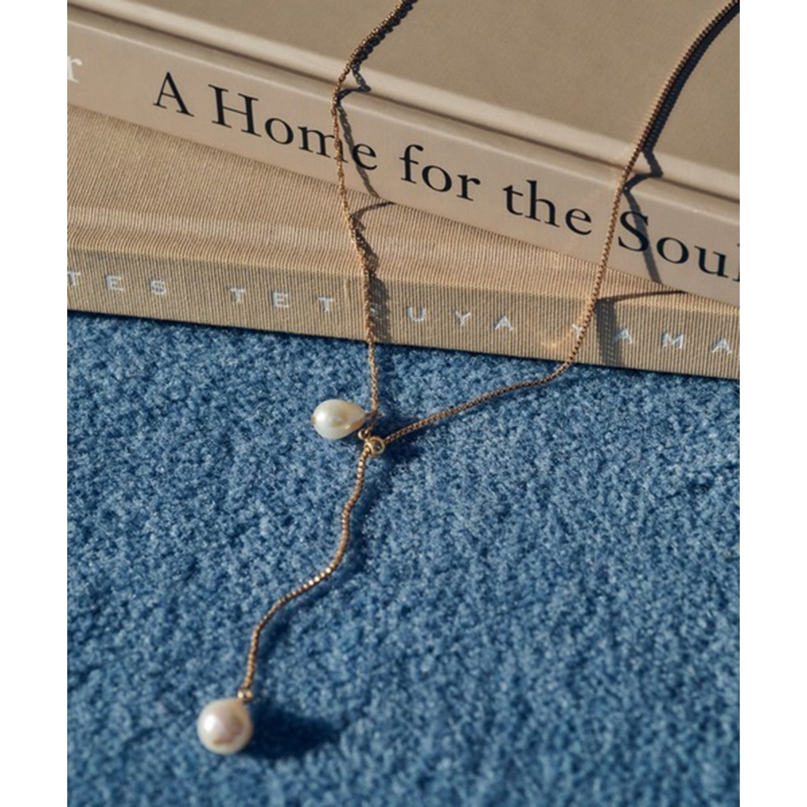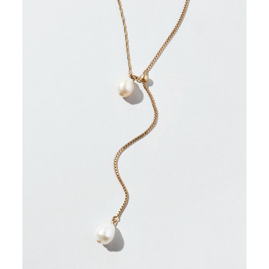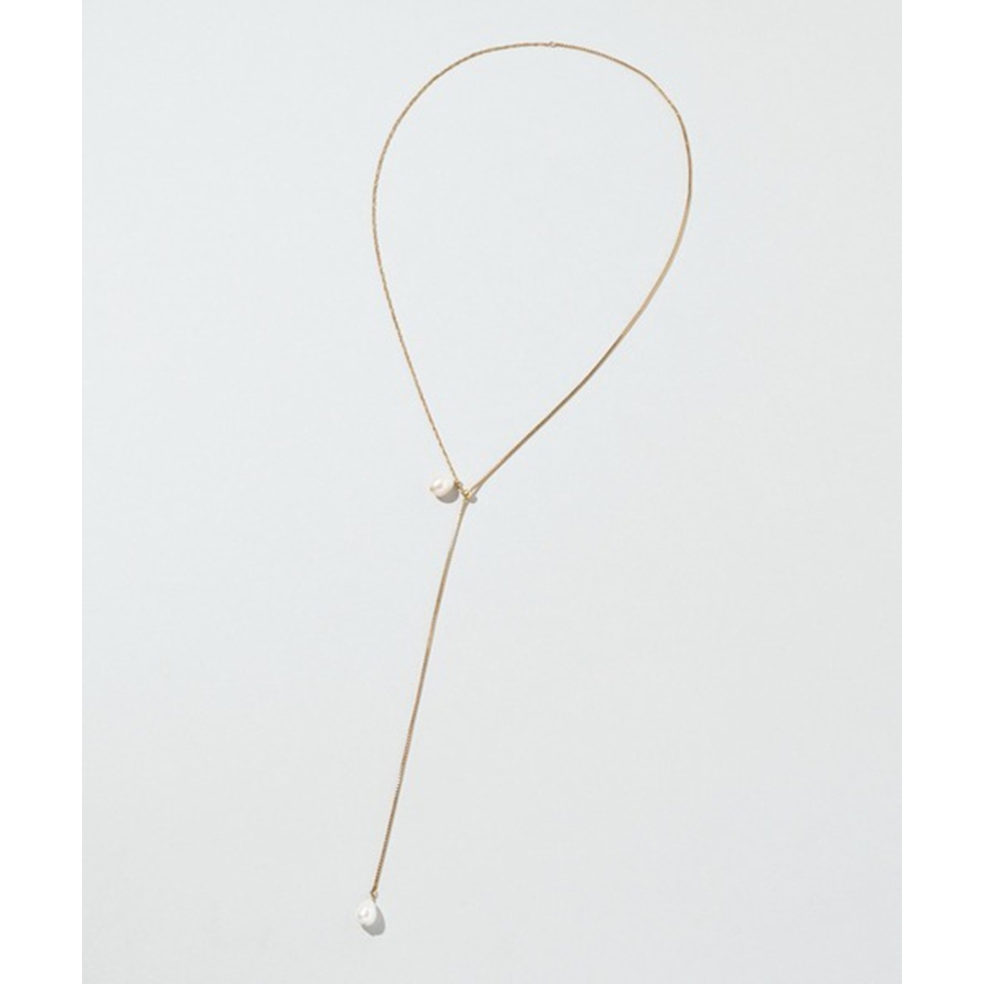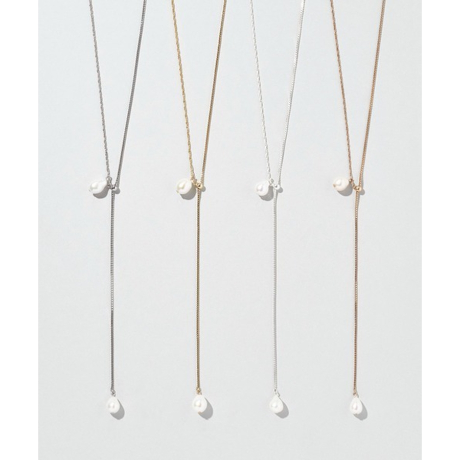 シンプルなチェーンに淡水パールをあしらったデザインは、ナチュラルな艶感が女性らしさを引き立て、スタイリングに品のあるアクセントを添えます。
