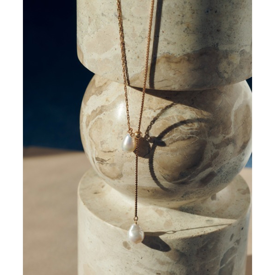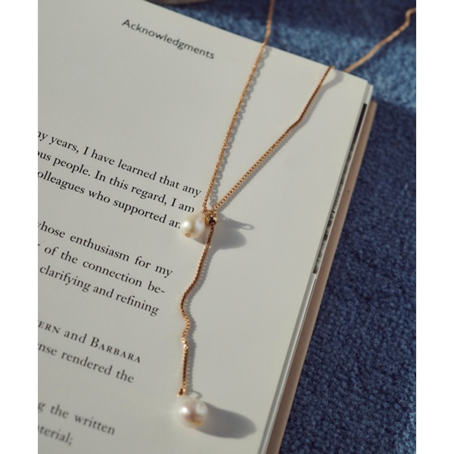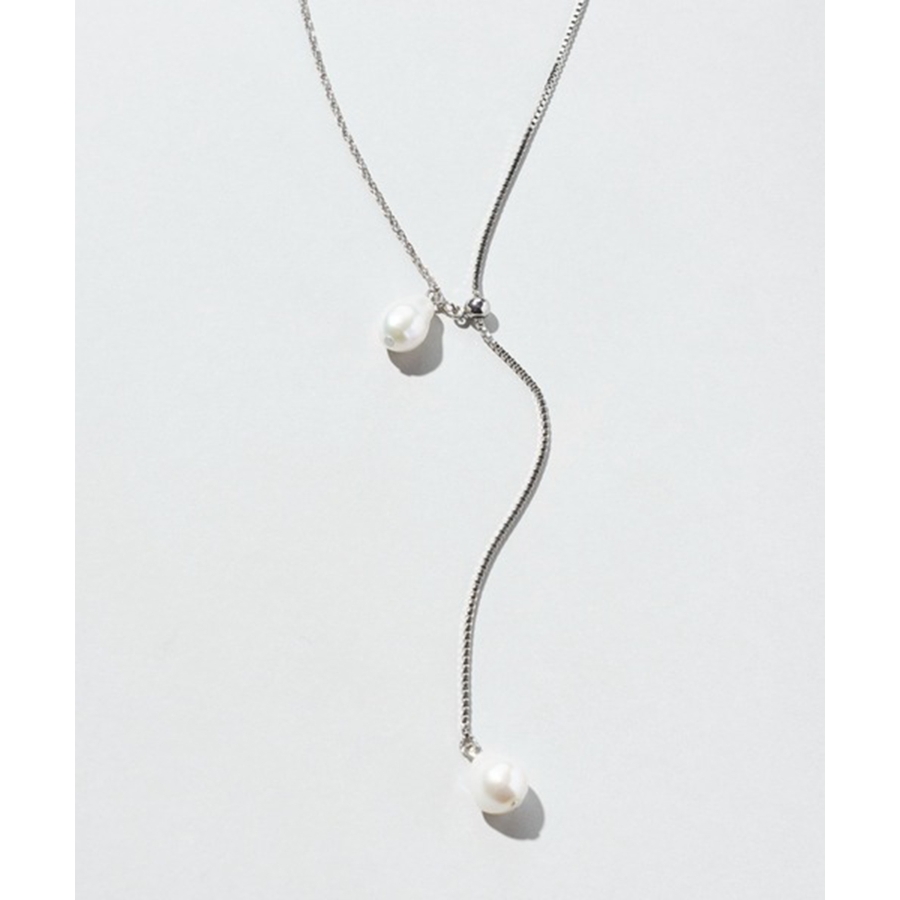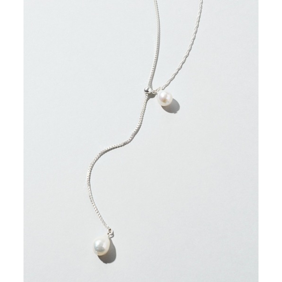 シンプルなチェーンに淡水パールをあしらったデザインは、ナチュラルな艶感が女性らしさを引き立て、スタイリングに品のあるアクセントを添えます。