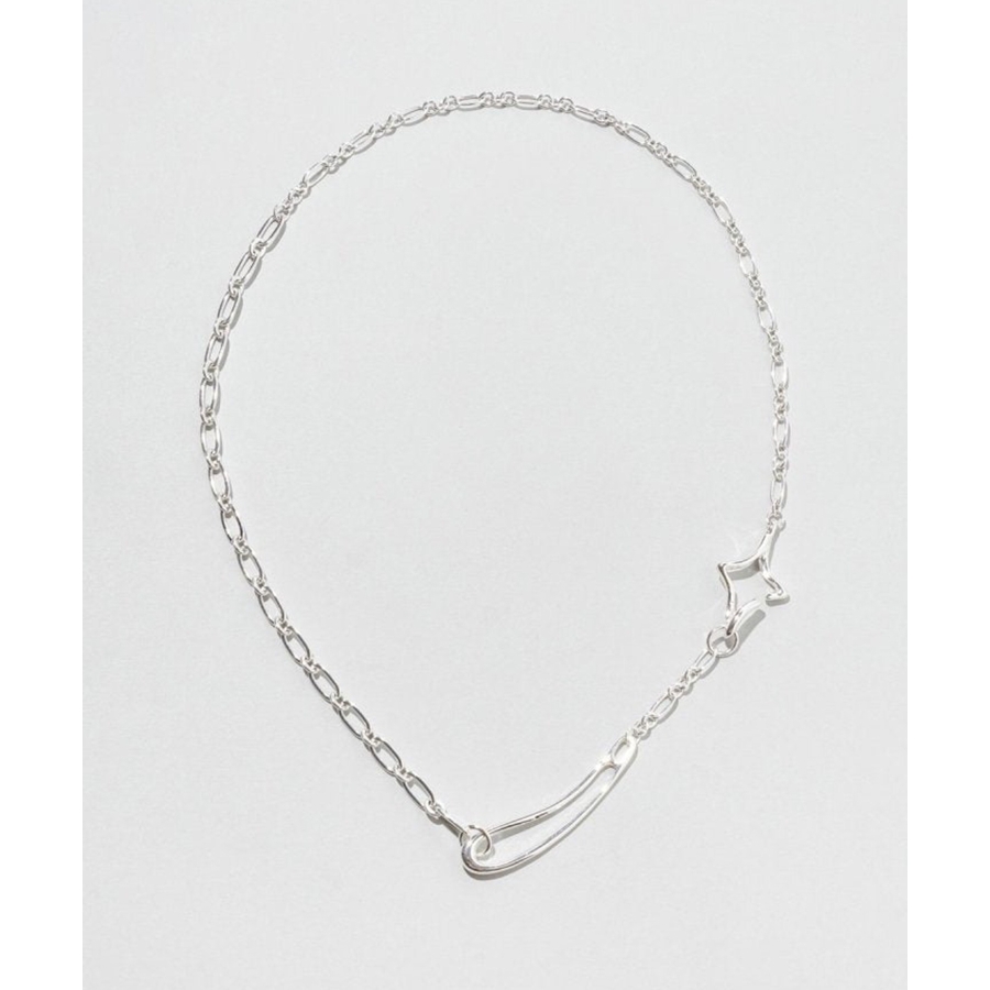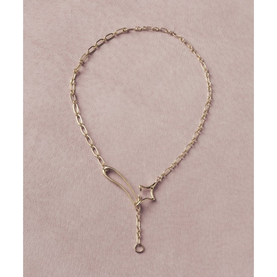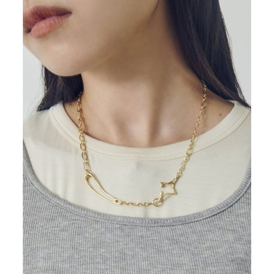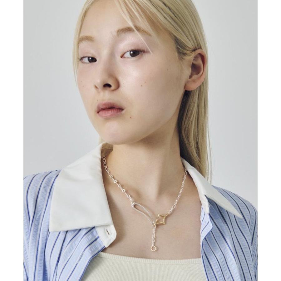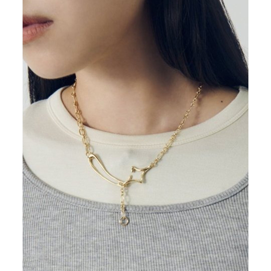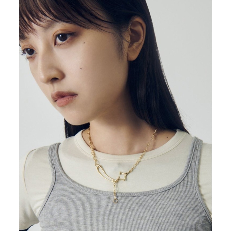 フックの付け位置を変えるだけで、Y字シルエットとシンプルなチェーンネックレス、2WAYのスタイルを楽しめるのが最大の魅力。