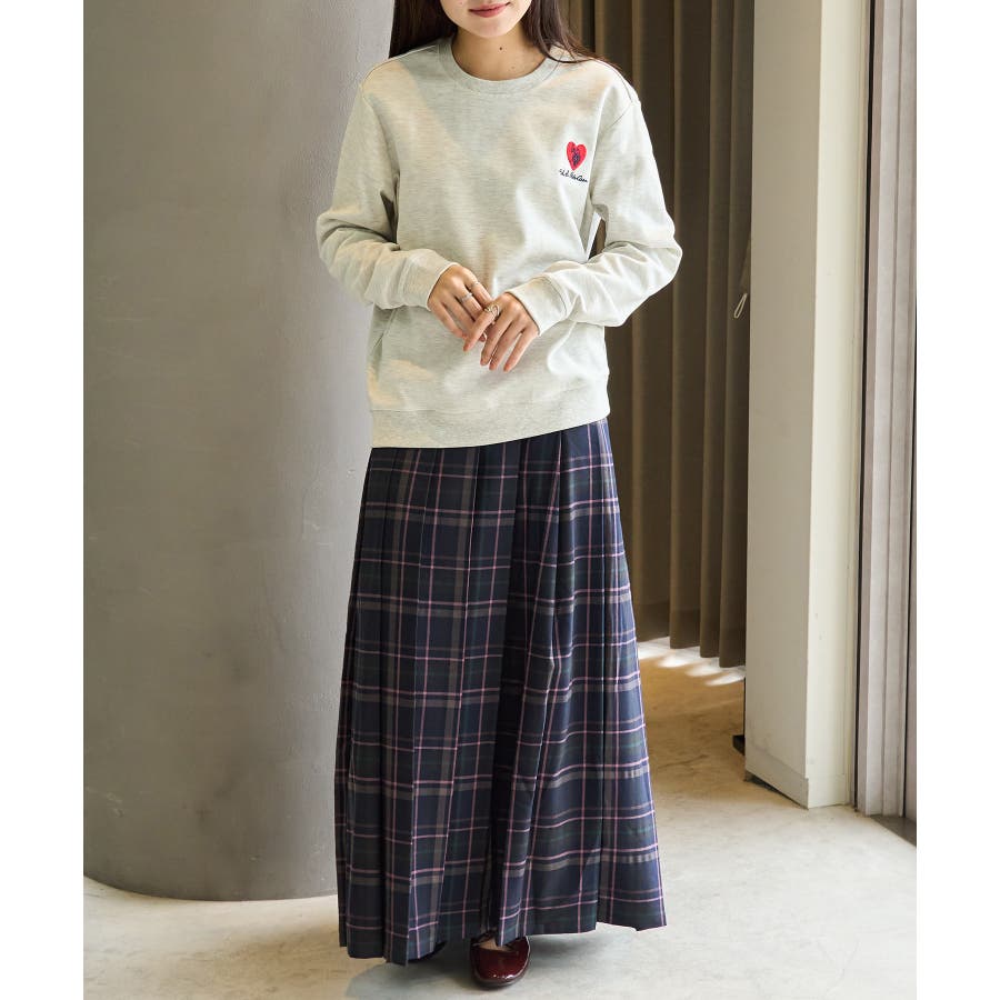 ・プリーツスカートと合わせれば、ハート刺繍が映えるフェミニンカジュアルに。