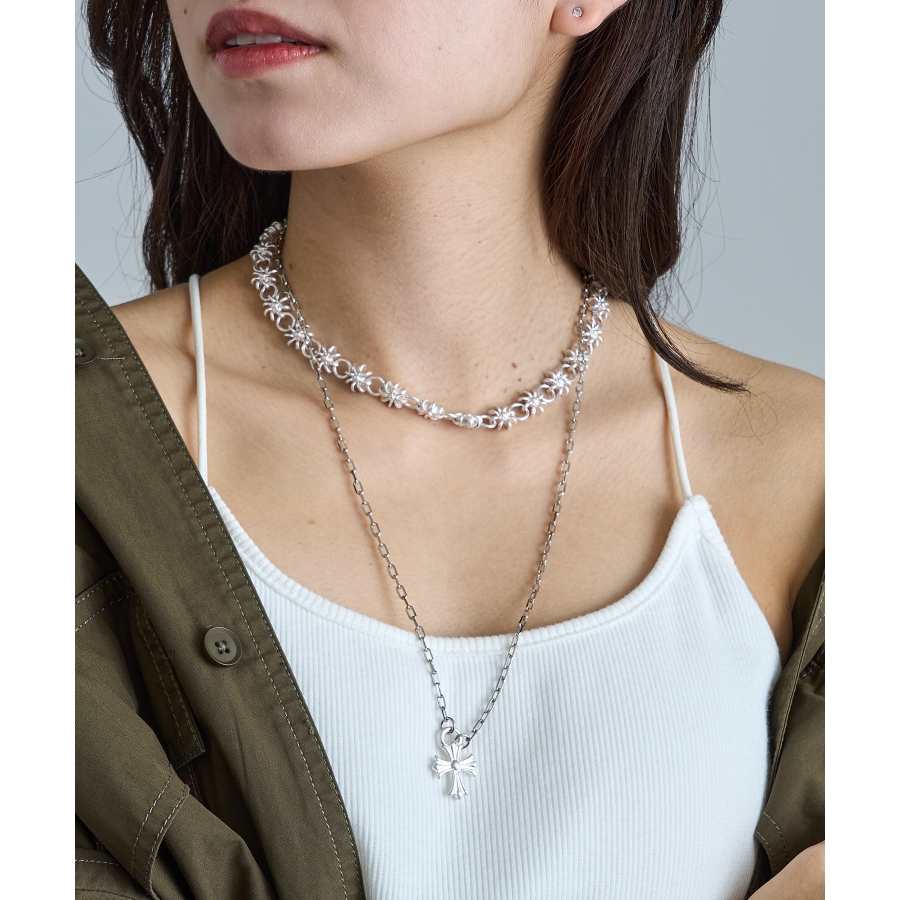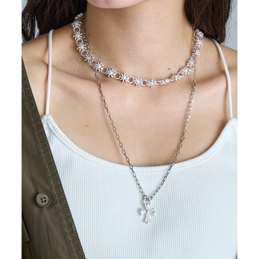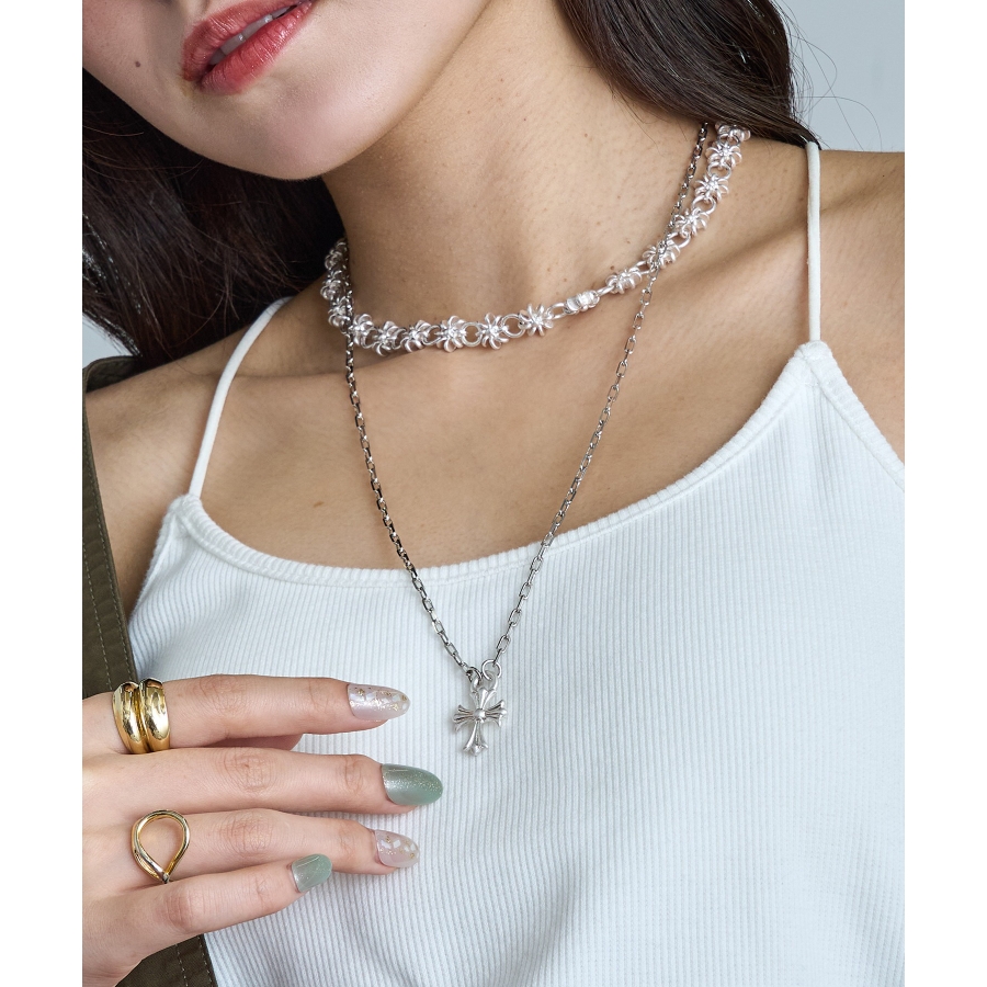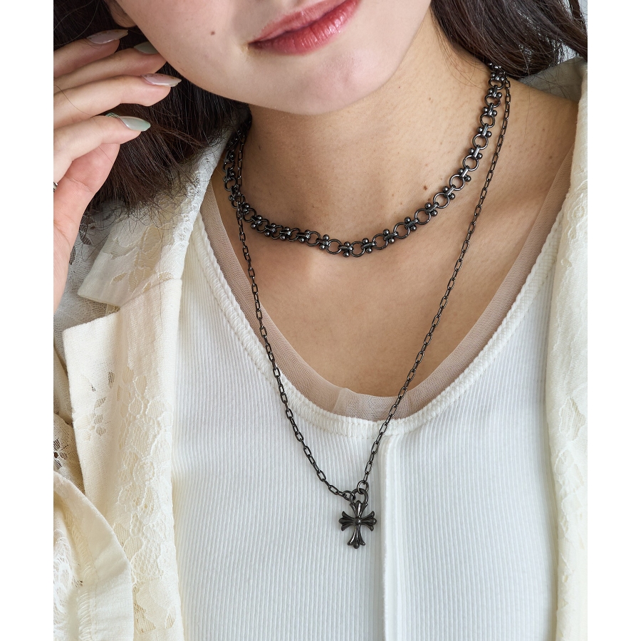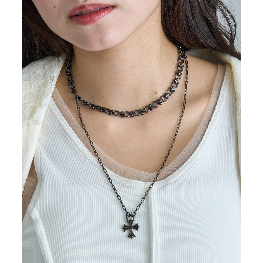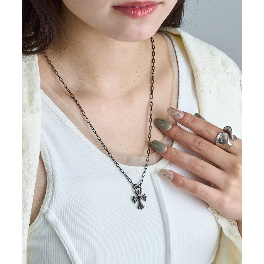 クールさと洗練を兼ね備えた、オーバルチェーン×クロスペンダントトップのネックレス