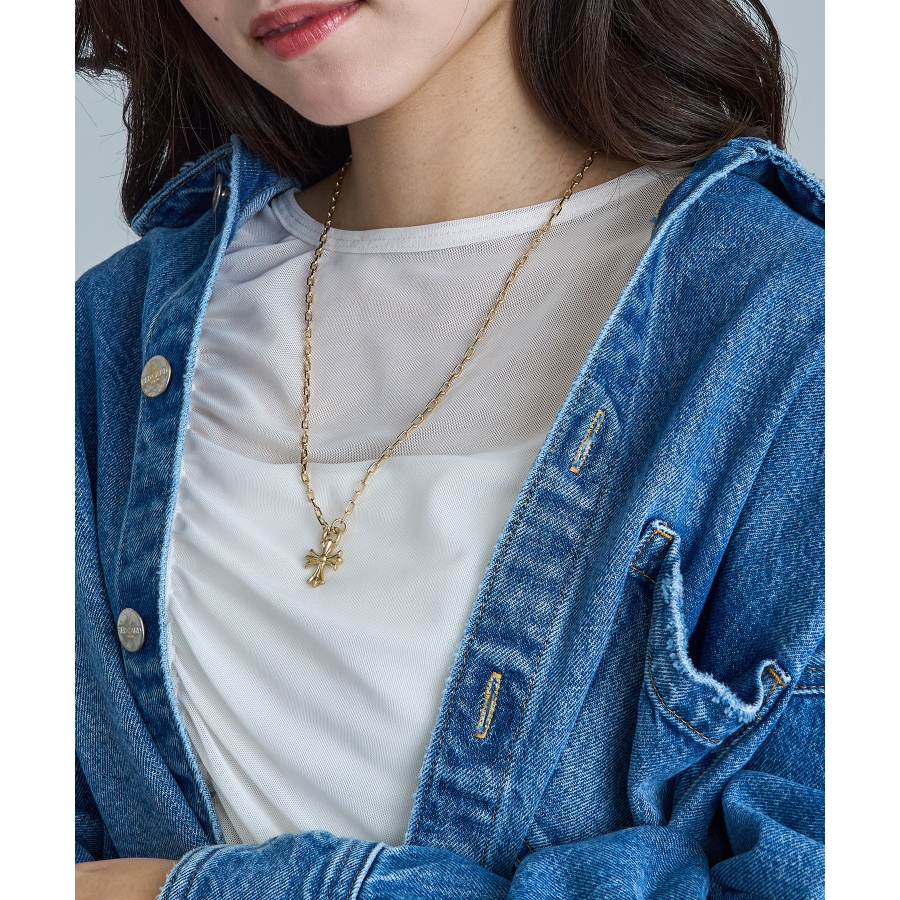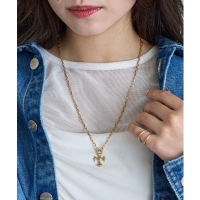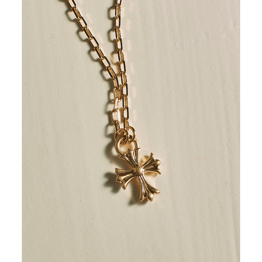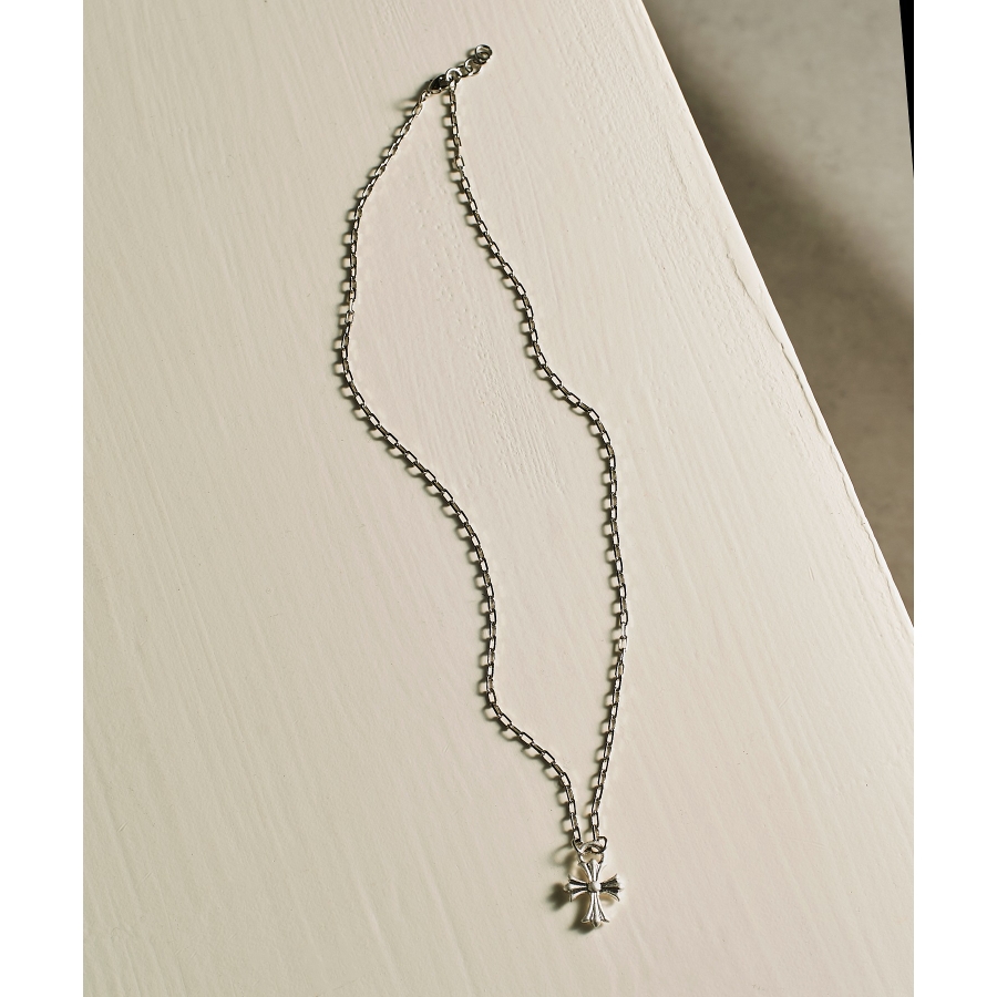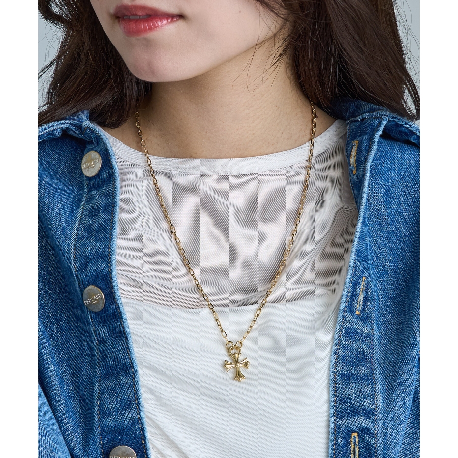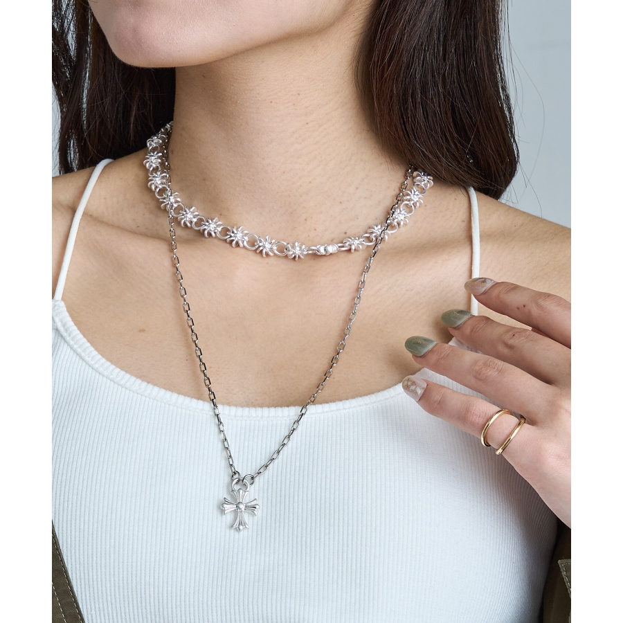 クールさと洗練を兼ね備えた、オーバルチェーン×クロスペンダントトップのネックレス