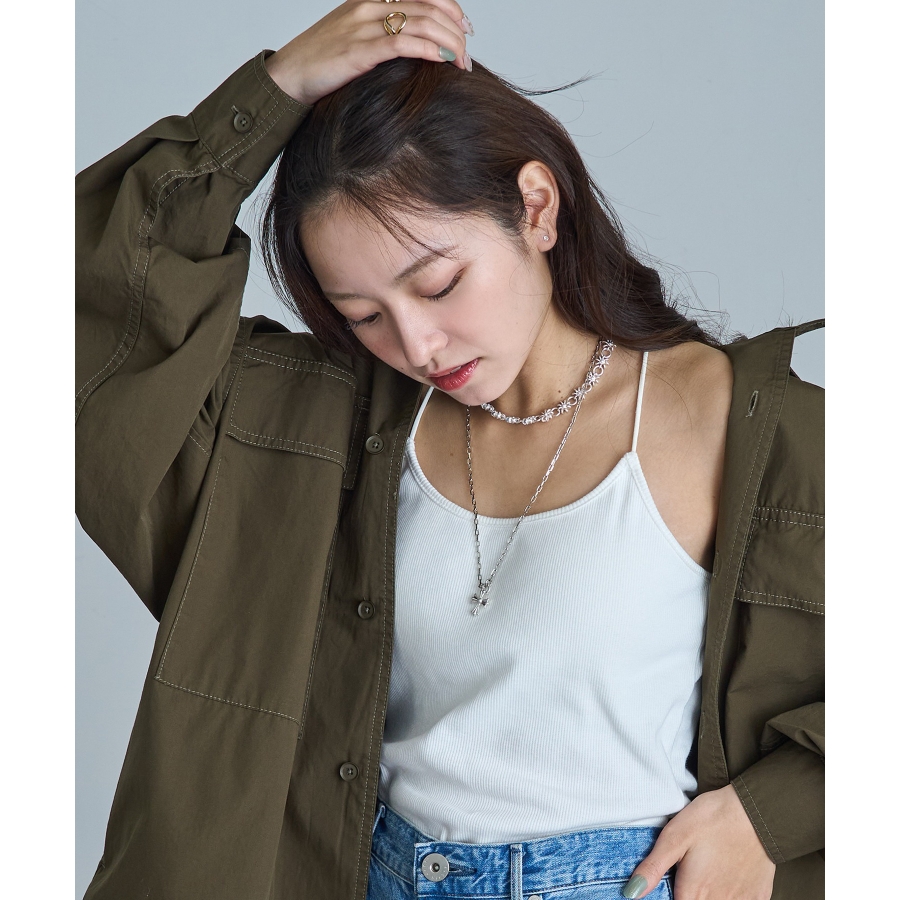 ・シャツのボタンを開けてペンダントを際立たせるレイヤード