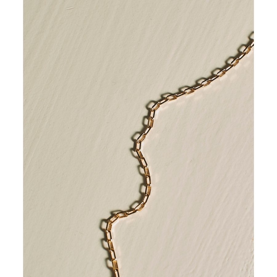 エッジの効いたオーバルチェーンに、程よいボリューム感のペンダントトップを組み合わせた一品。