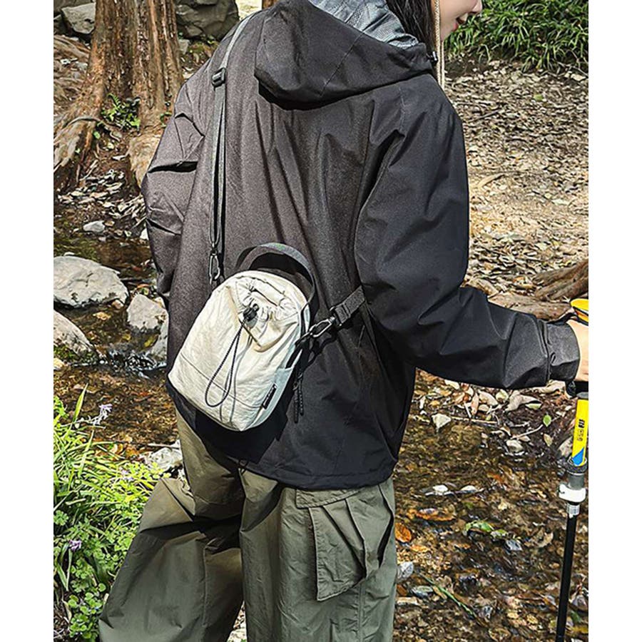 スマホや財布、キーなどの必需品をすっきり整理できるサイズで前面ポケットにペットボトルが収納できる万能アイテムです。