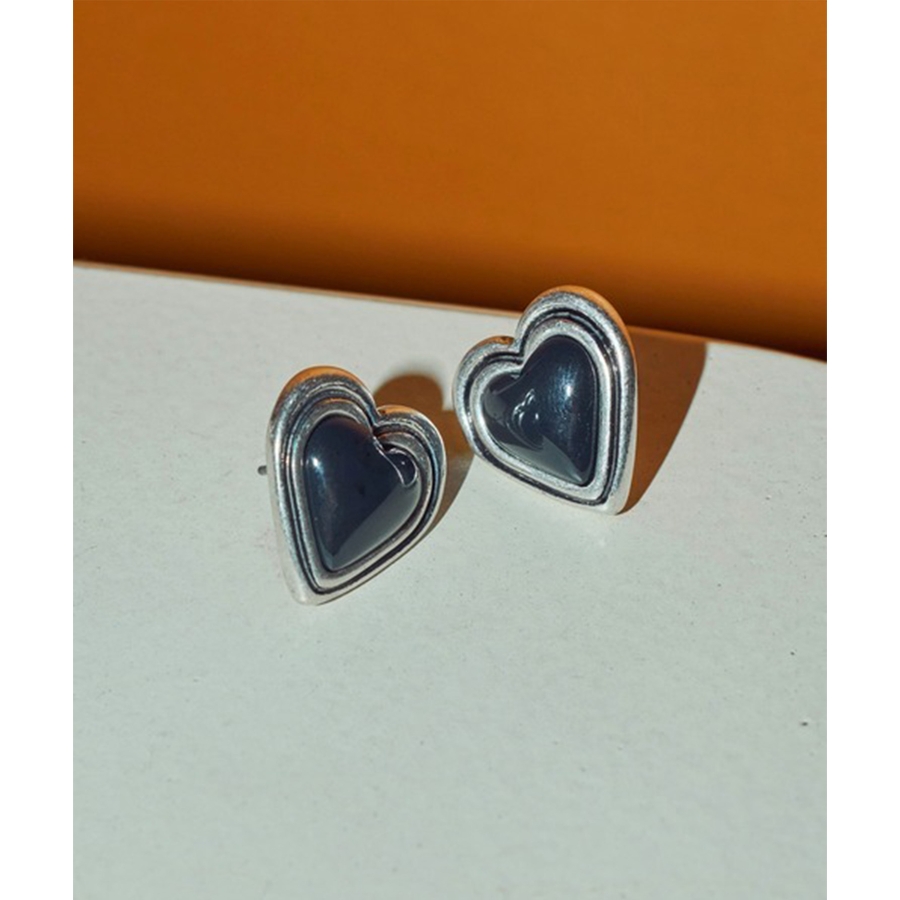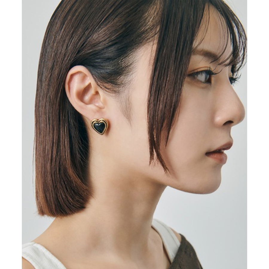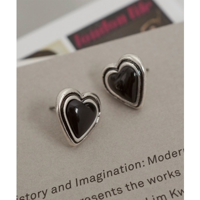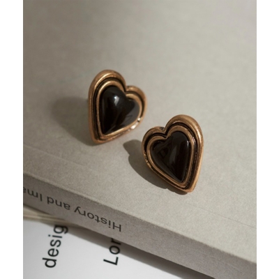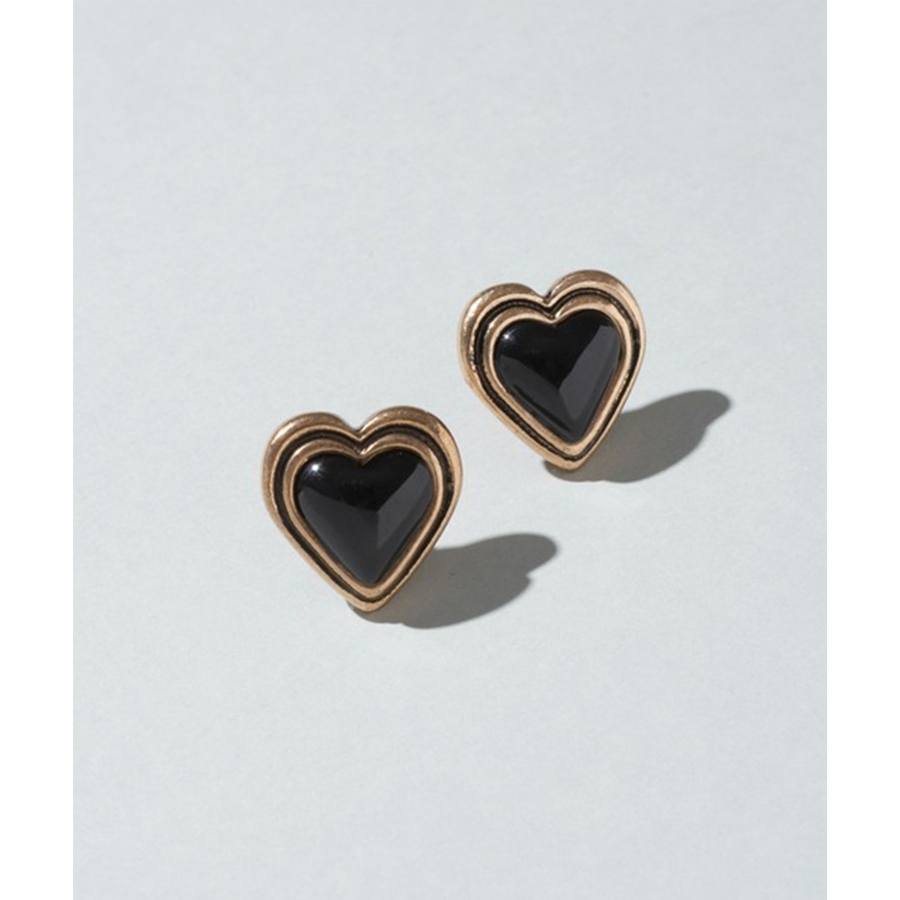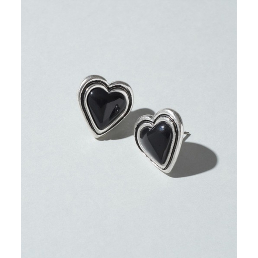 ヴィンテージライクなハートモチーフが印象的なブラックハートピアス