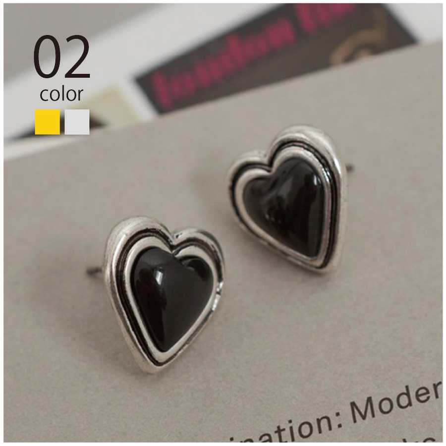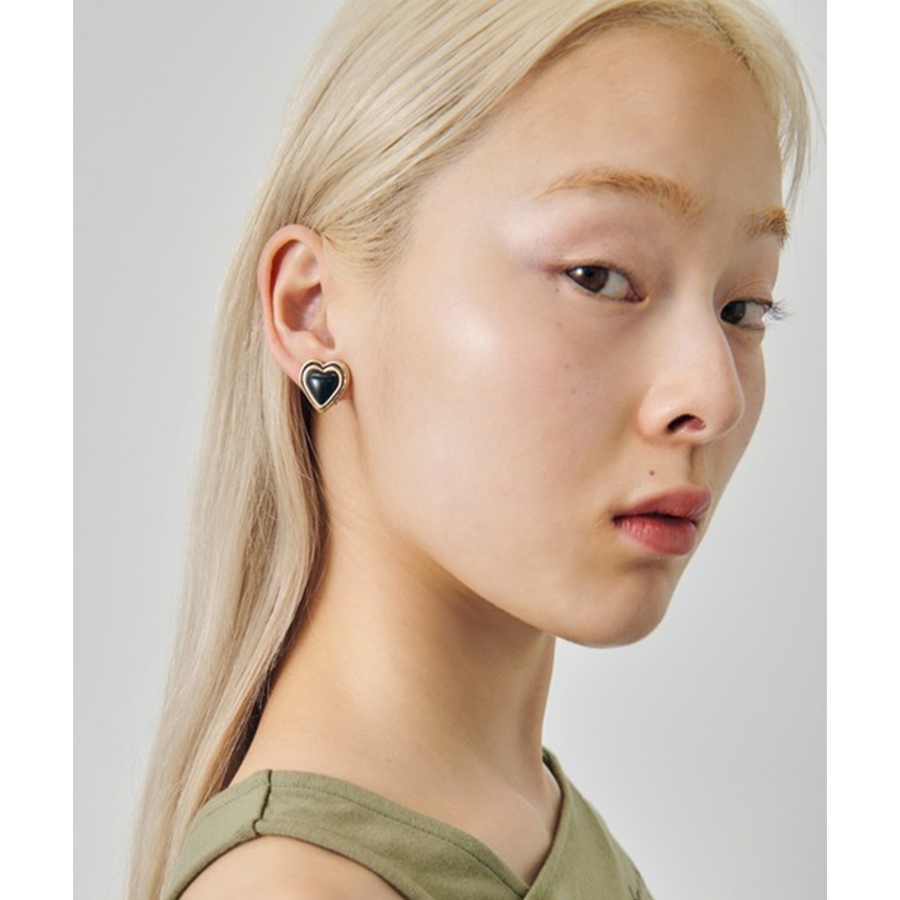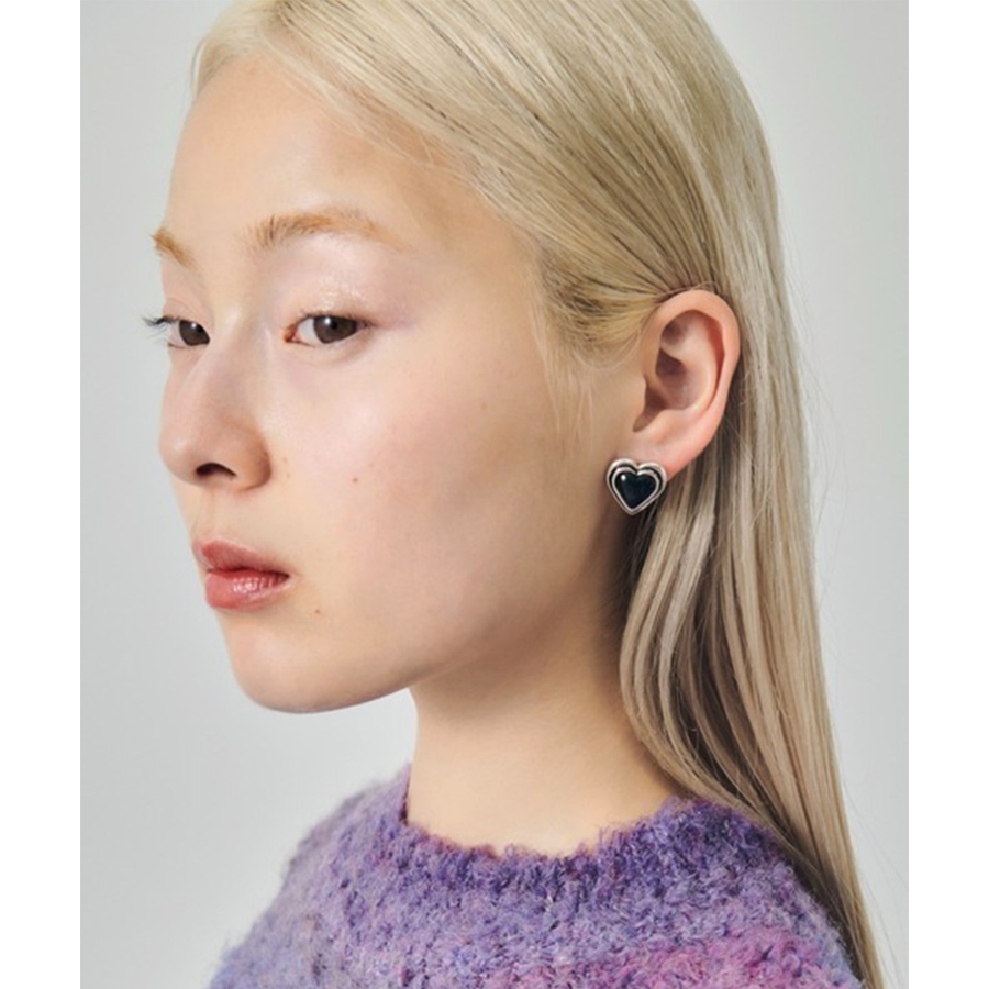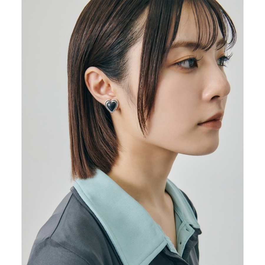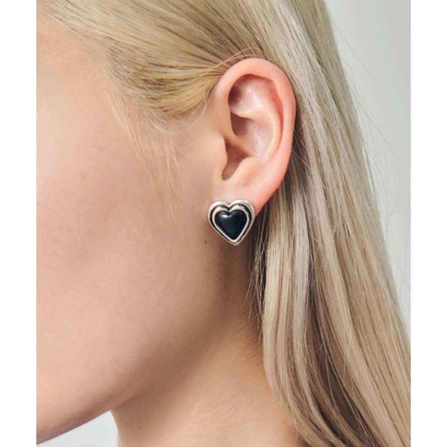 ヴィンテージライクなハートモチーフが印象的なブラックハートピアス