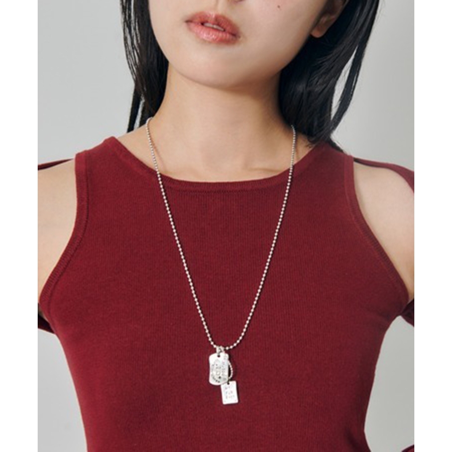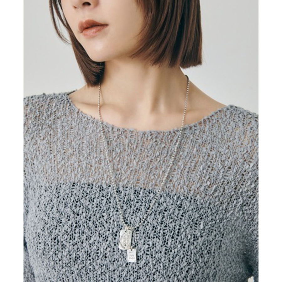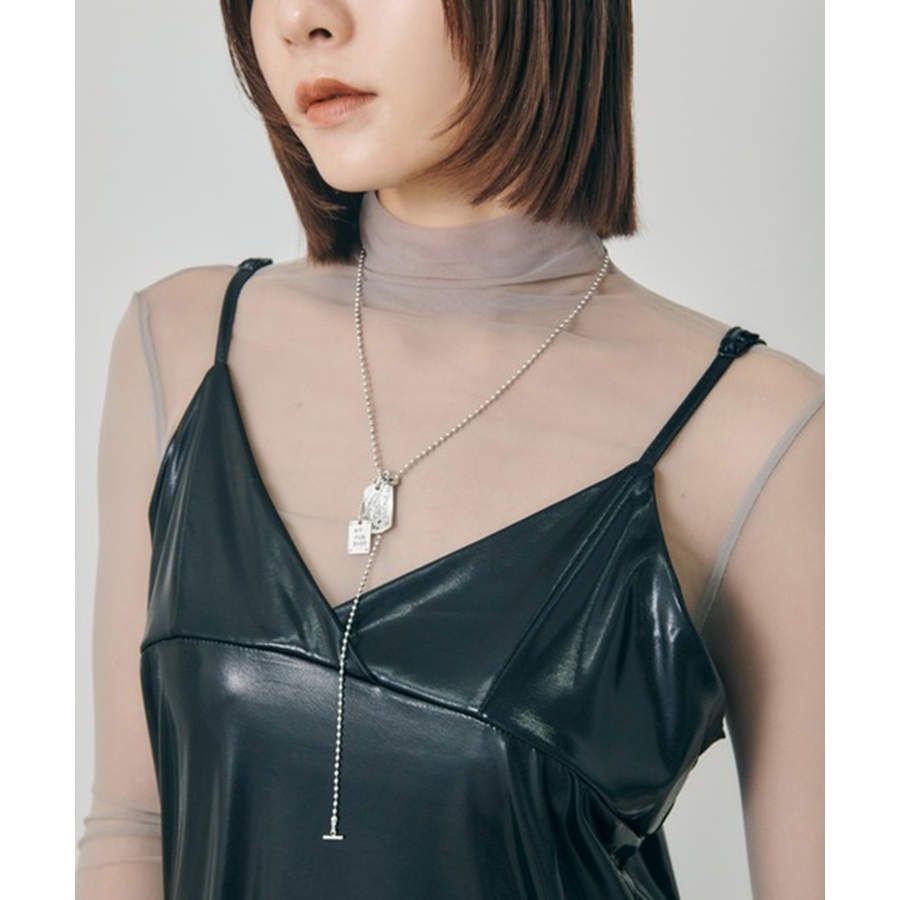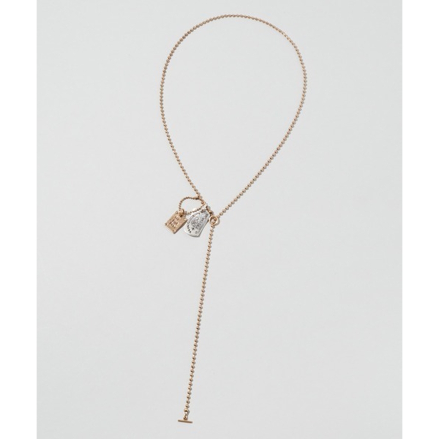マンテル金具を後ろに隠してシンプルに着用するほか、マンテルを前に持ってきてY字シルエット風にしたり、プレートを外してシンプルなチェーンとしても使えるマルチウェイなアイテムです。
