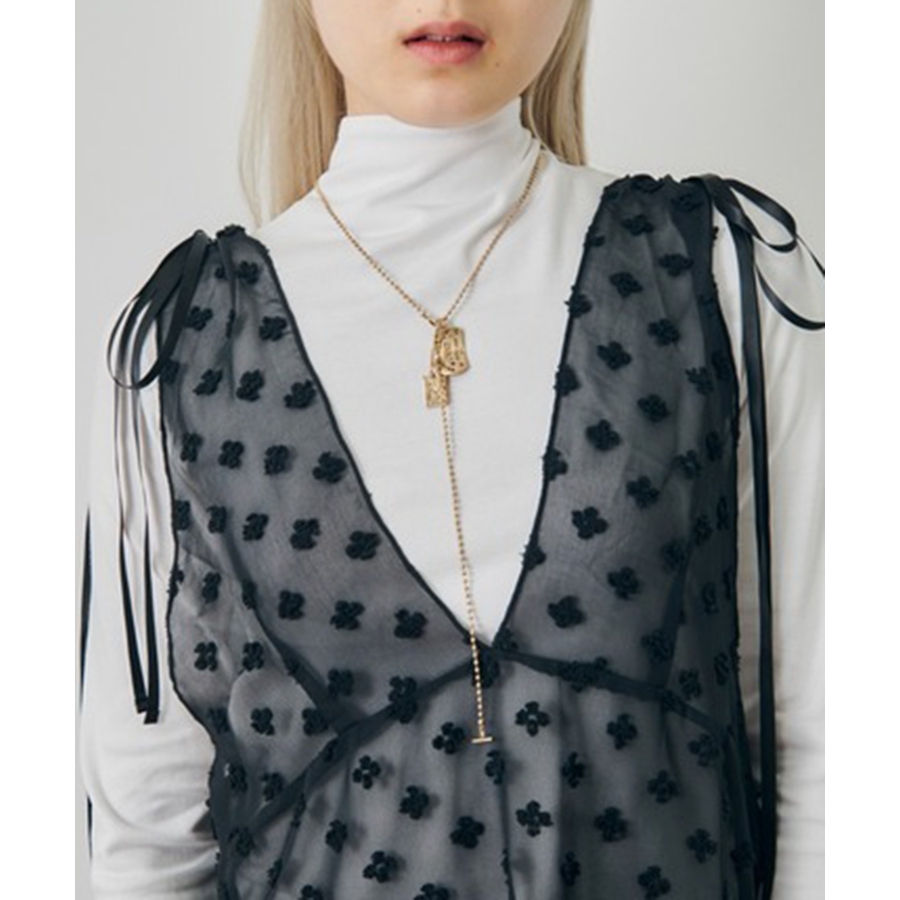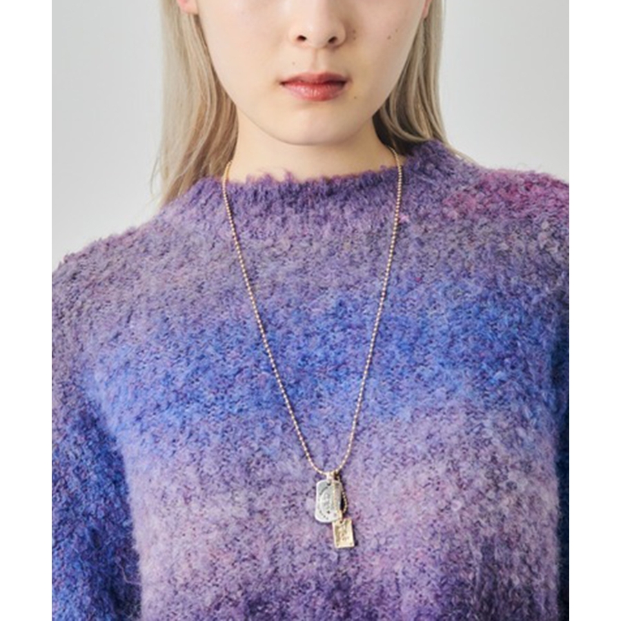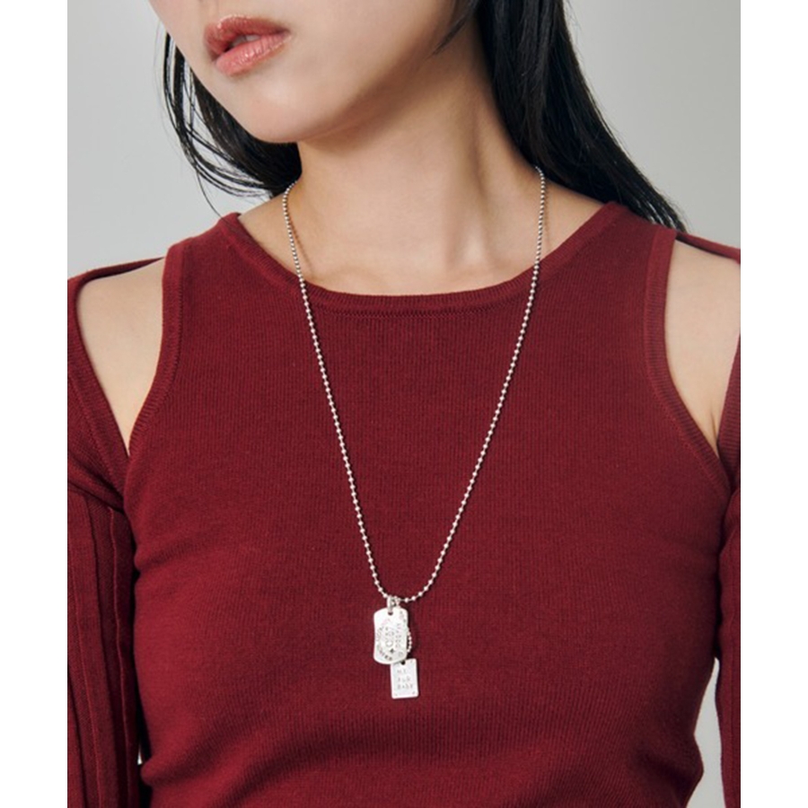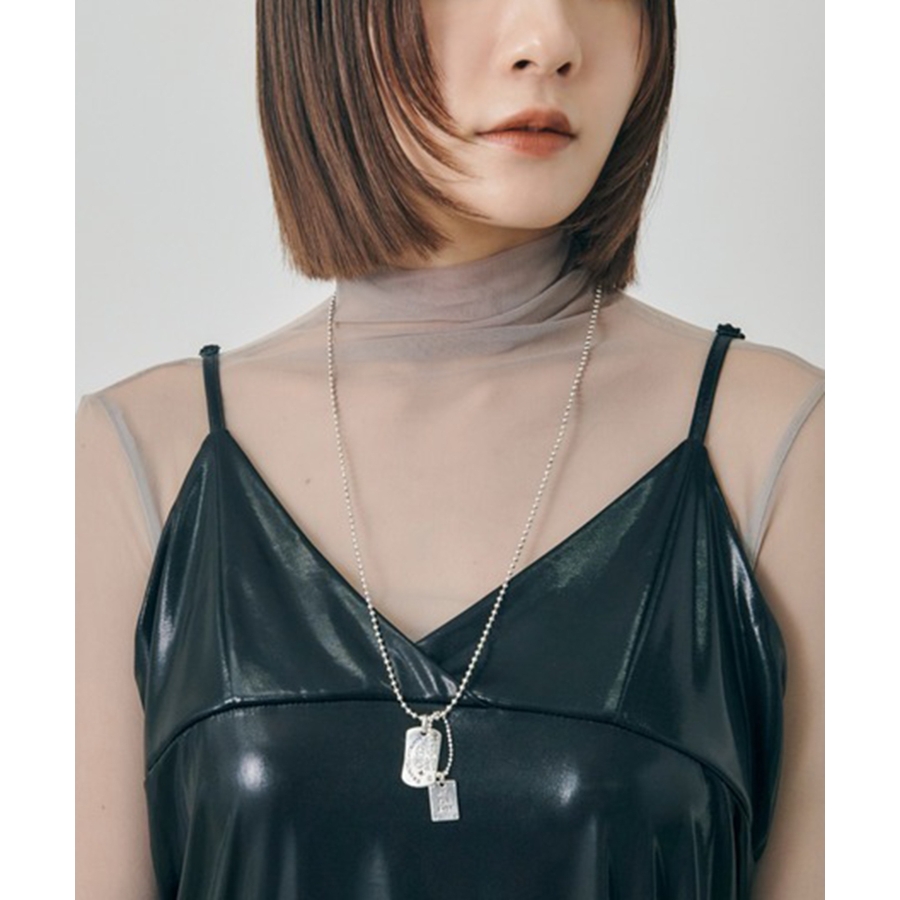 マンテル金具を後ろに隠してシンプルに着用するほか、マンテルを前に持ってきてY字シルエット風にしたり、プレートを外してシンプルなチェーンとしても使えるマルチウェイなアイテムです。