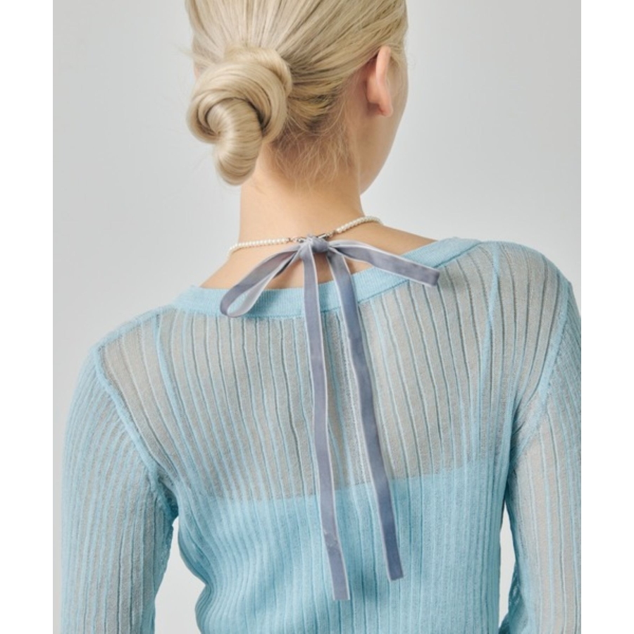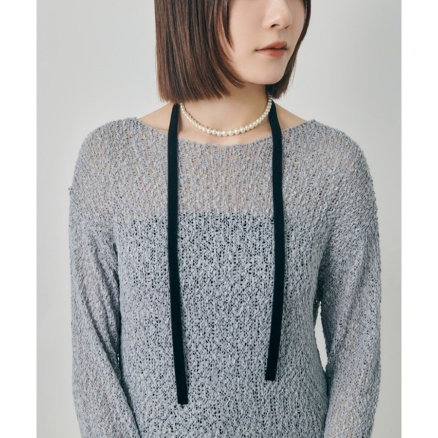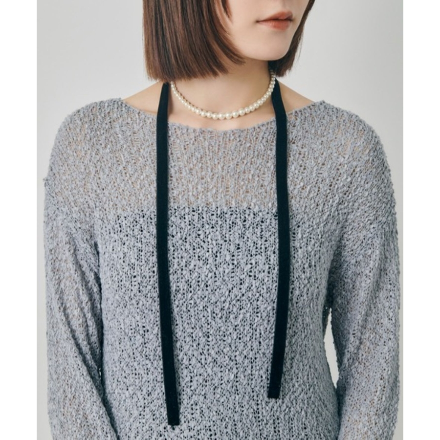 リボン部分はスライドビーズ仕様になっており、お好きな長さに調節できるため、様々なネックラインに対応し、着脱も簡単です。