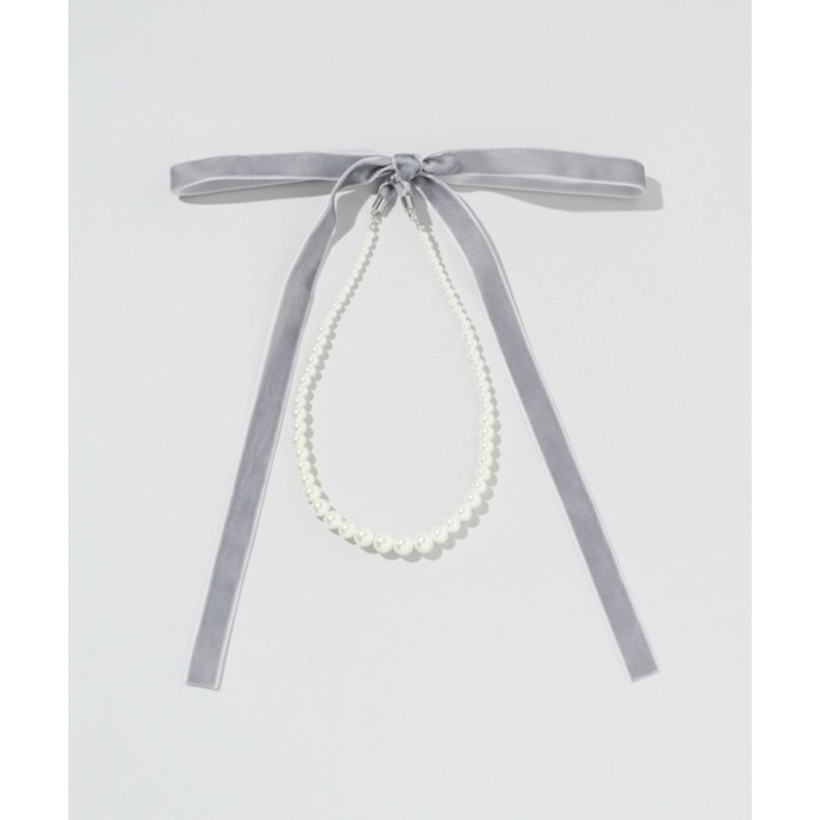 高級感のあるガラスパールのネックレスに、上品な光沢のベロア生地のリボンを組み合わせたデザインです。