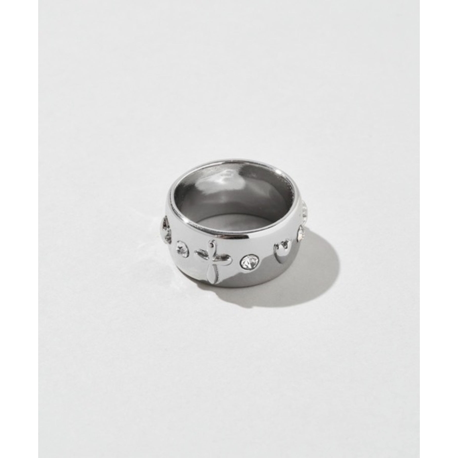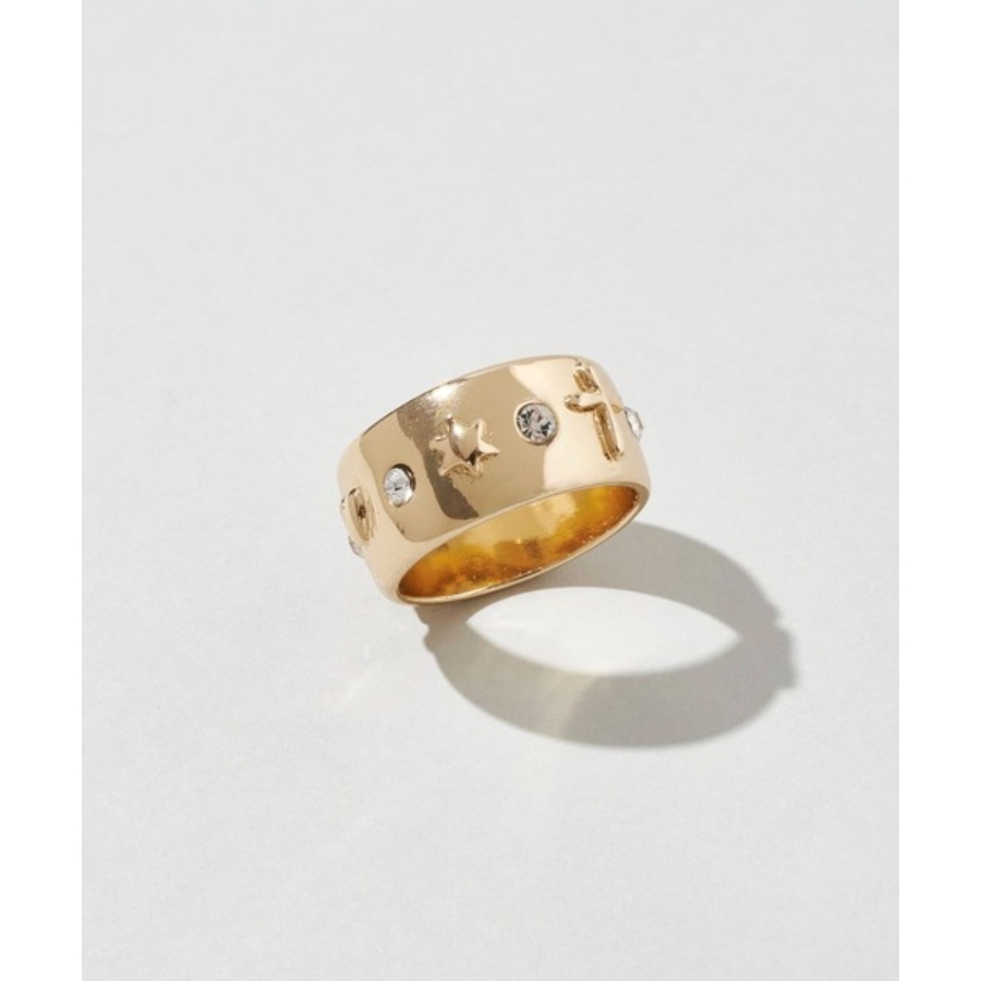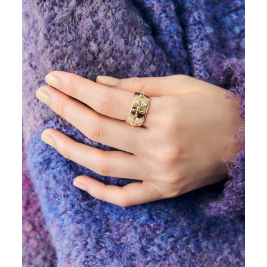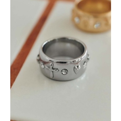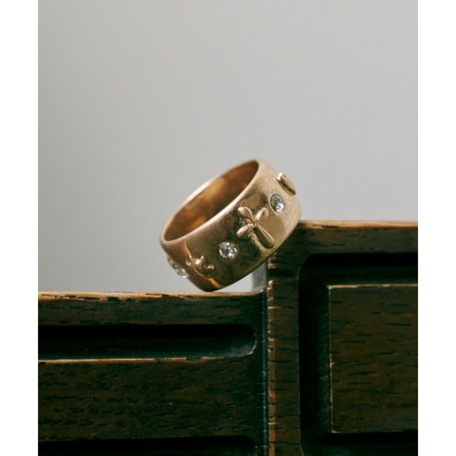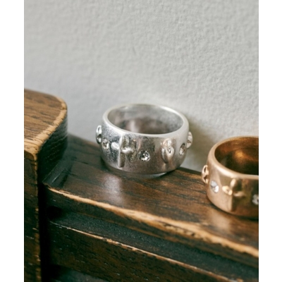 ビジューをあしらったワイドフォルムリング