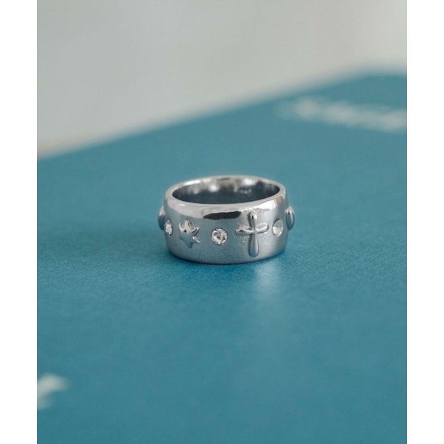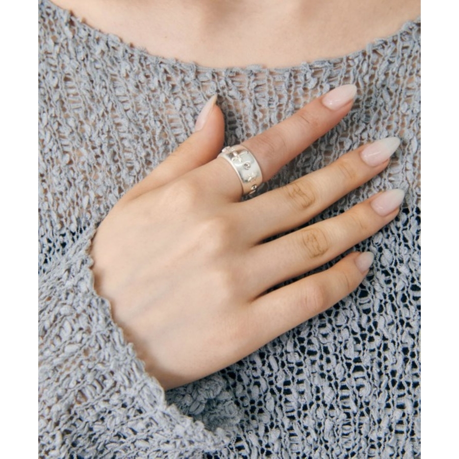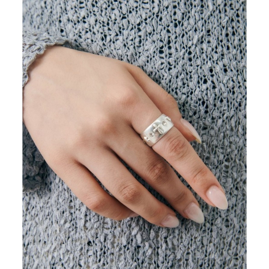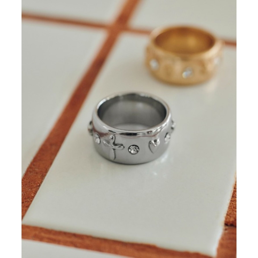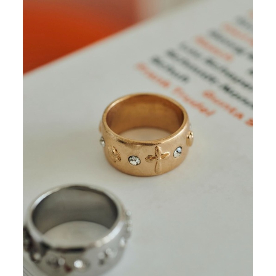 ビジューをあしらったワイドフォルムリング
