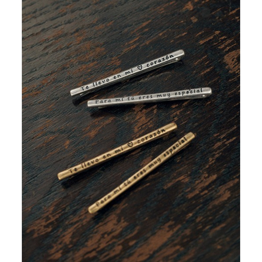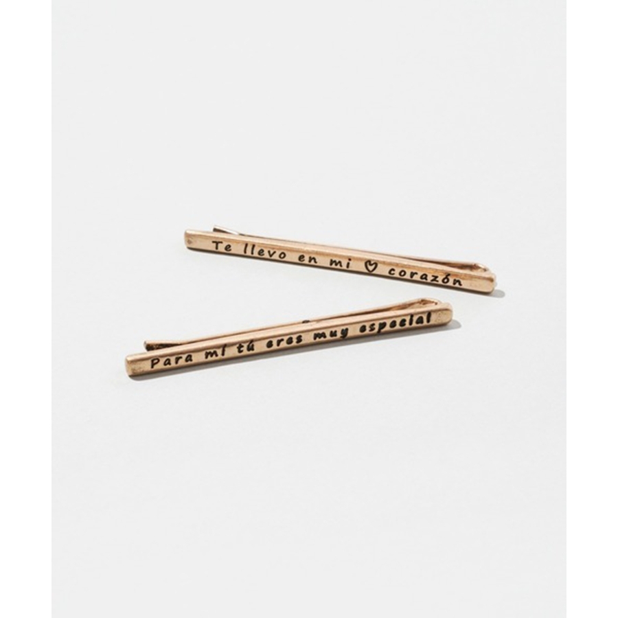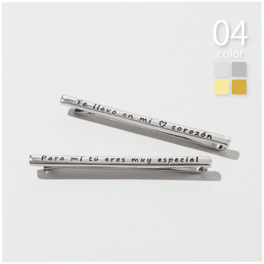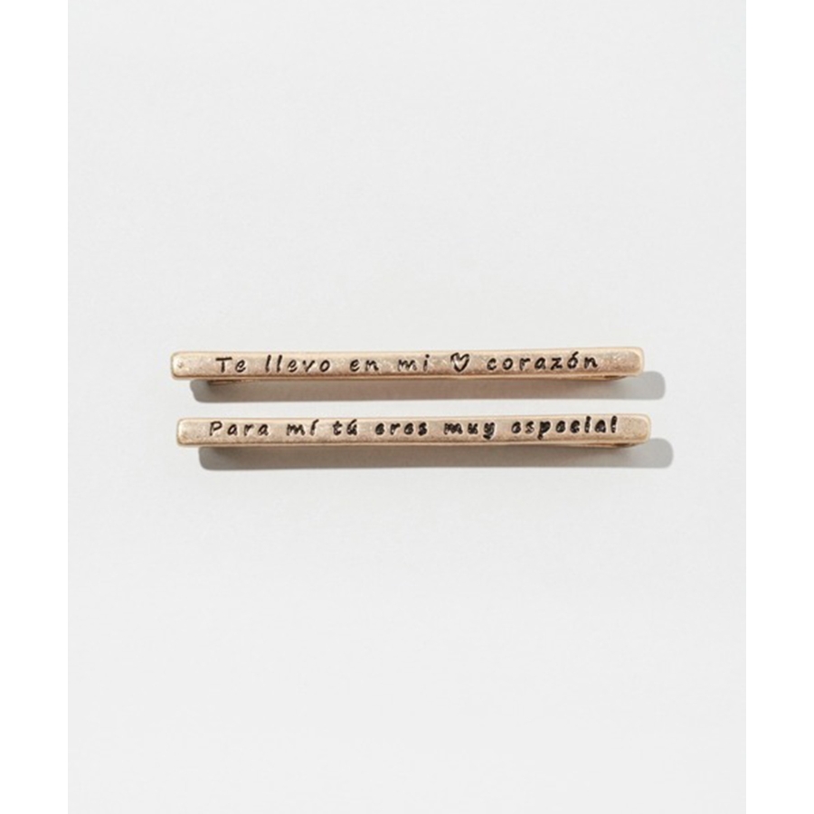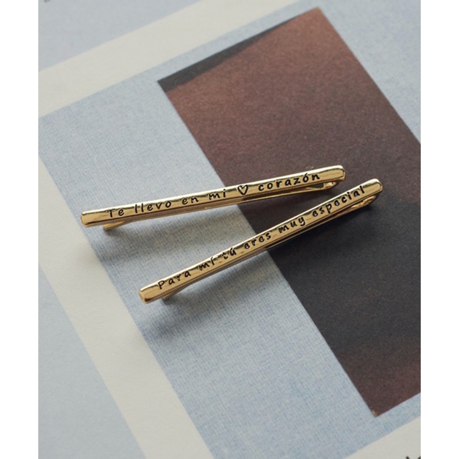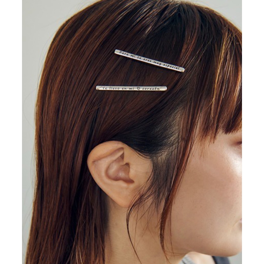 シンプルなメタル素材で、どんなファッションにも合わせやすい刻印プレート型のヘアピン2個セット。
