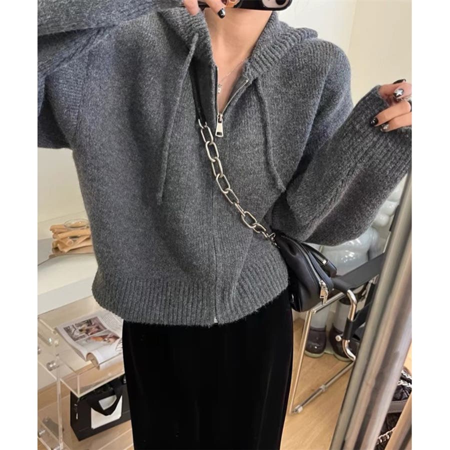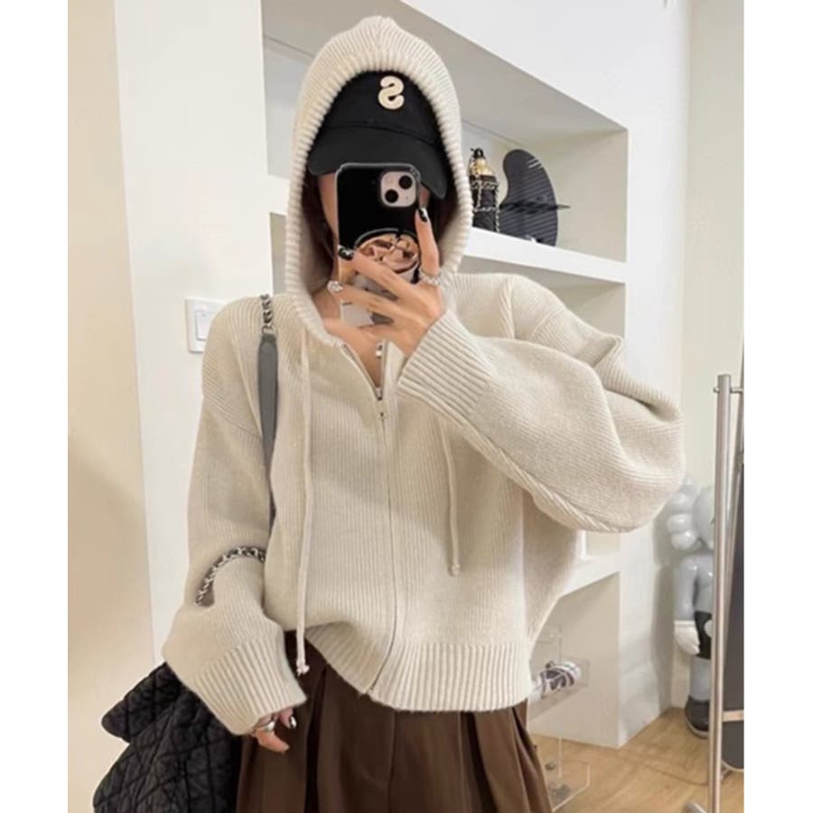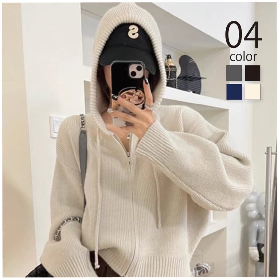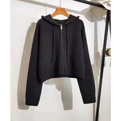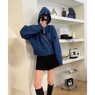 【SETUP7】フード付きリラックスニットジップアップパーカー KNF151