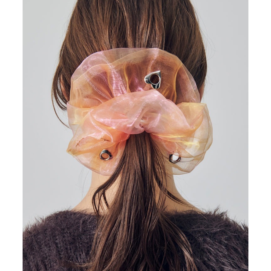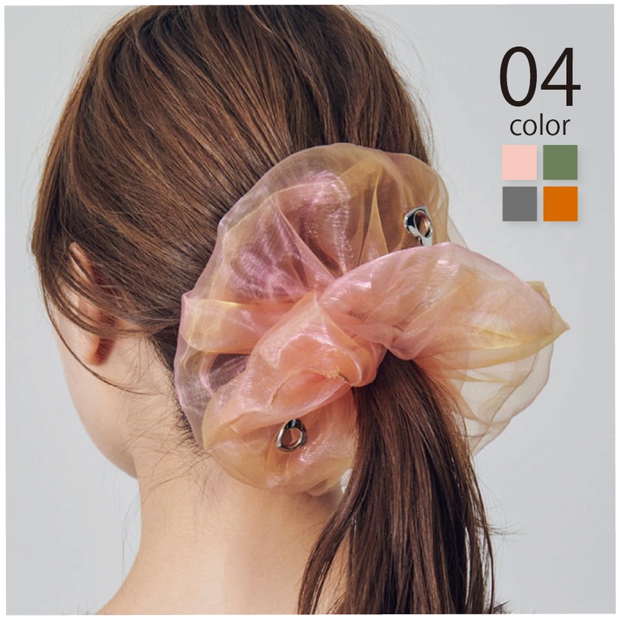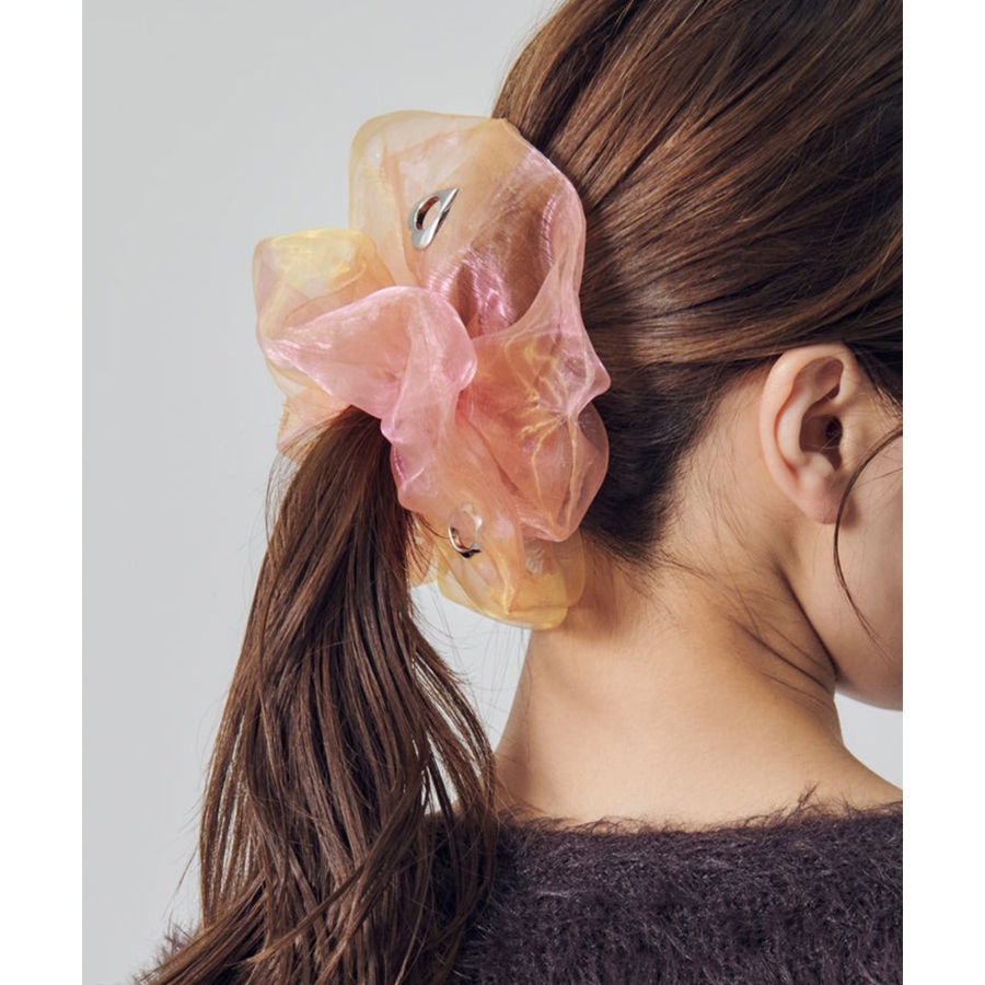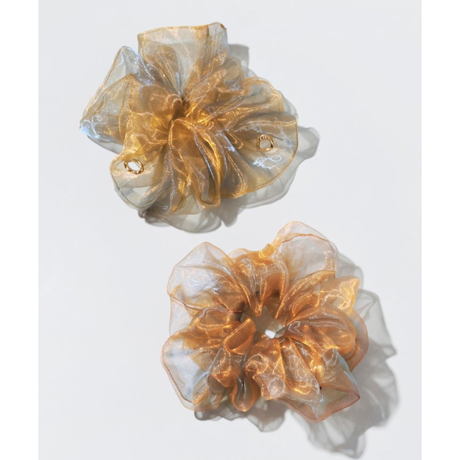 オーロラカラーのシアー素材が印象的な、GOLDYオリジナルデザインのシュシュです。
