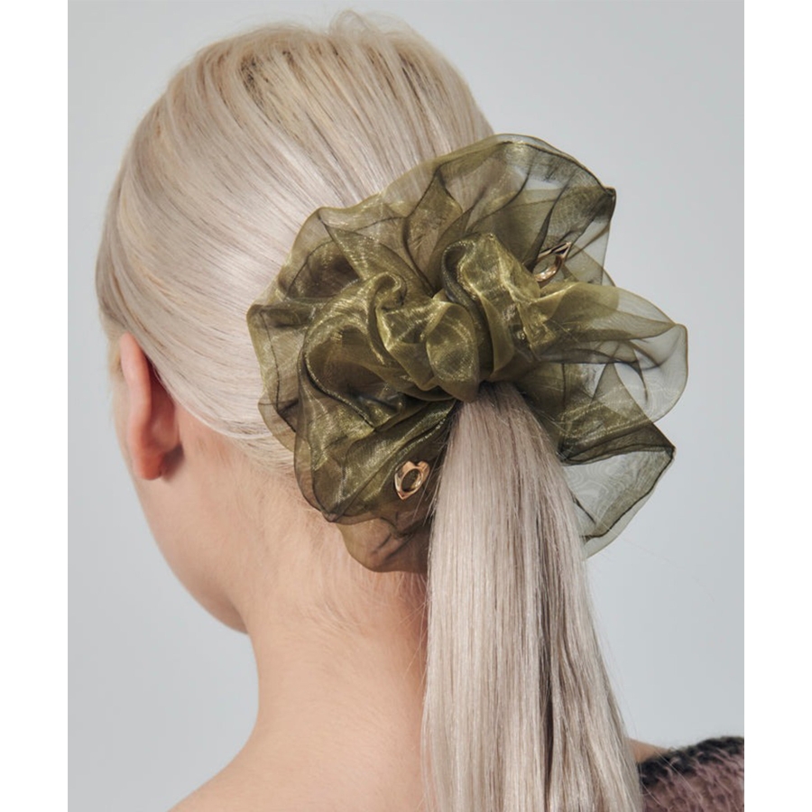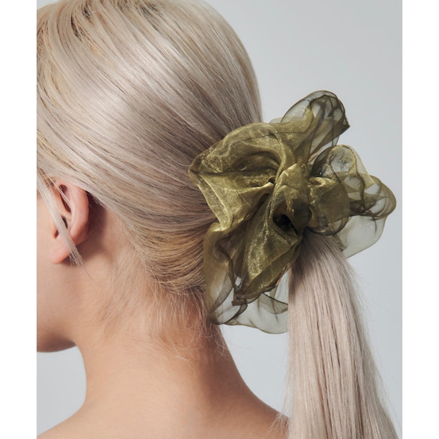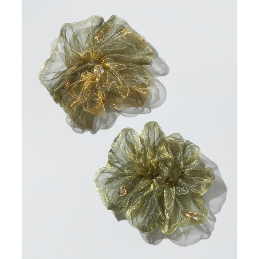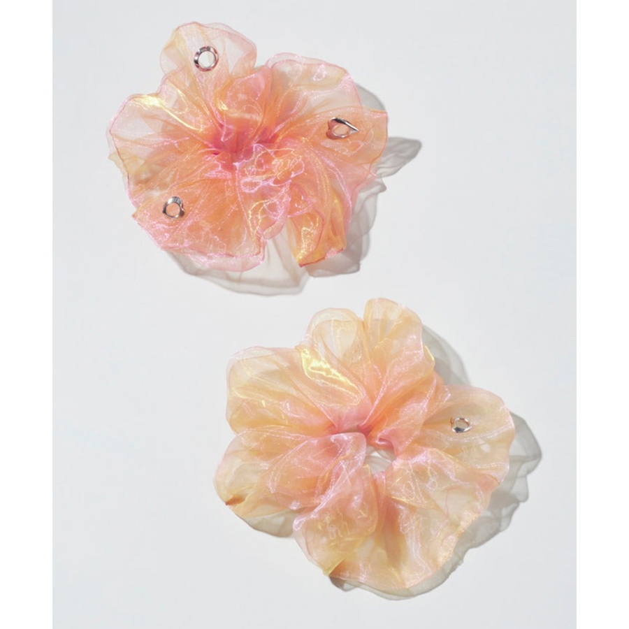 オーロラカラーのシアー素材が印象的な、GOLDYオリジナルデザインのシュシュです。