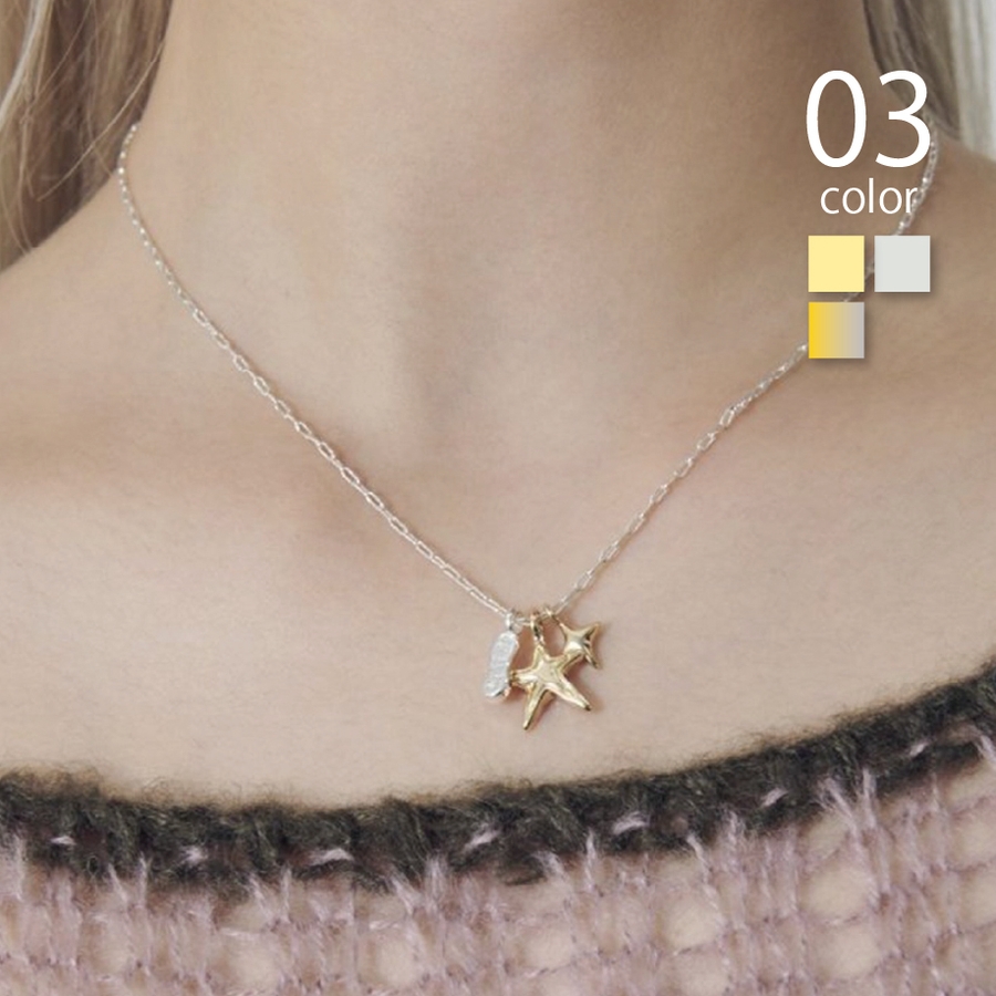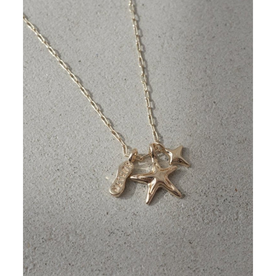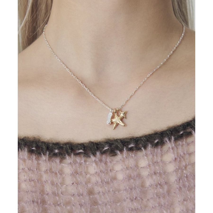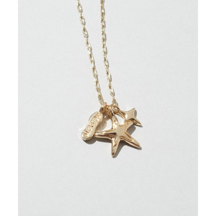 スターモチーフに添えられたメッセージチャームもアクセントになり、お手持ちの他のアクセサリーとの重ね付けも楽しめます。