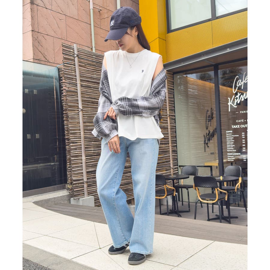 ・シャツやカーディガンのインナーとして着用し、裾や襟ぐりからタンクトップを覗かせるレイヤードスタイルに。