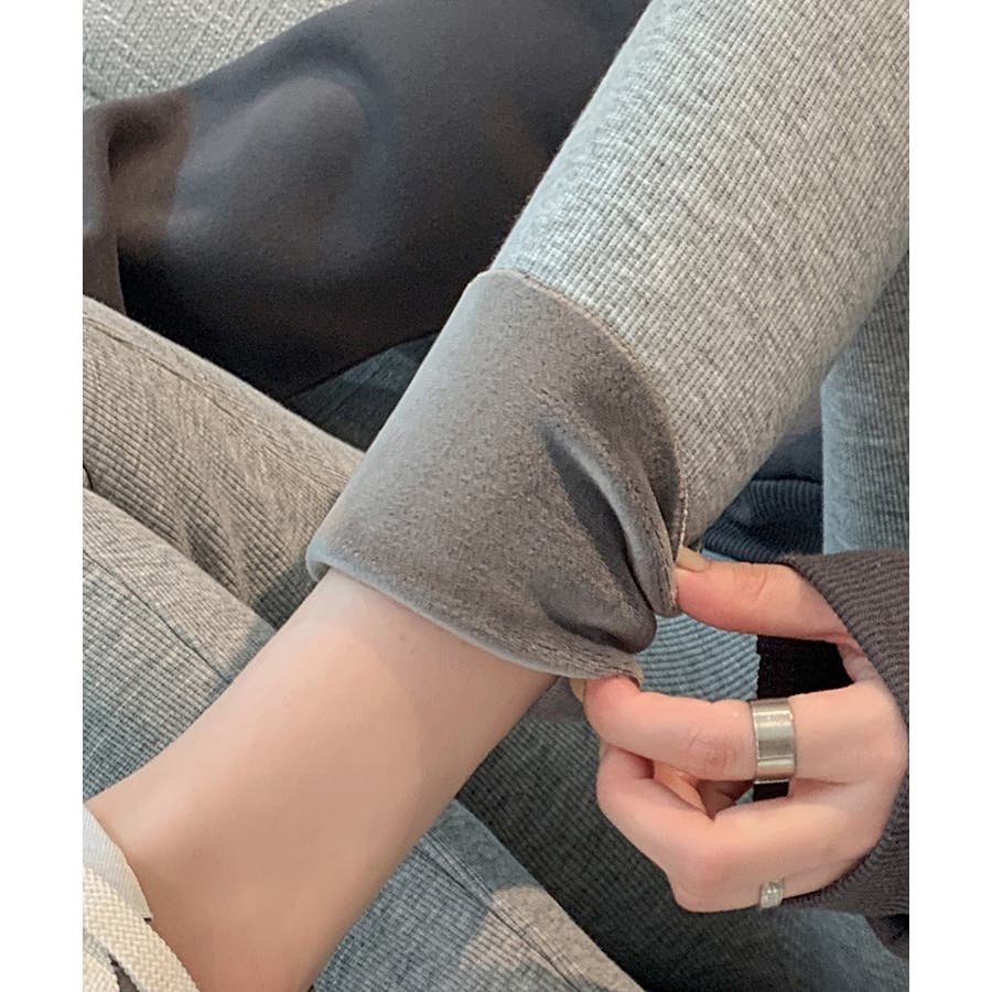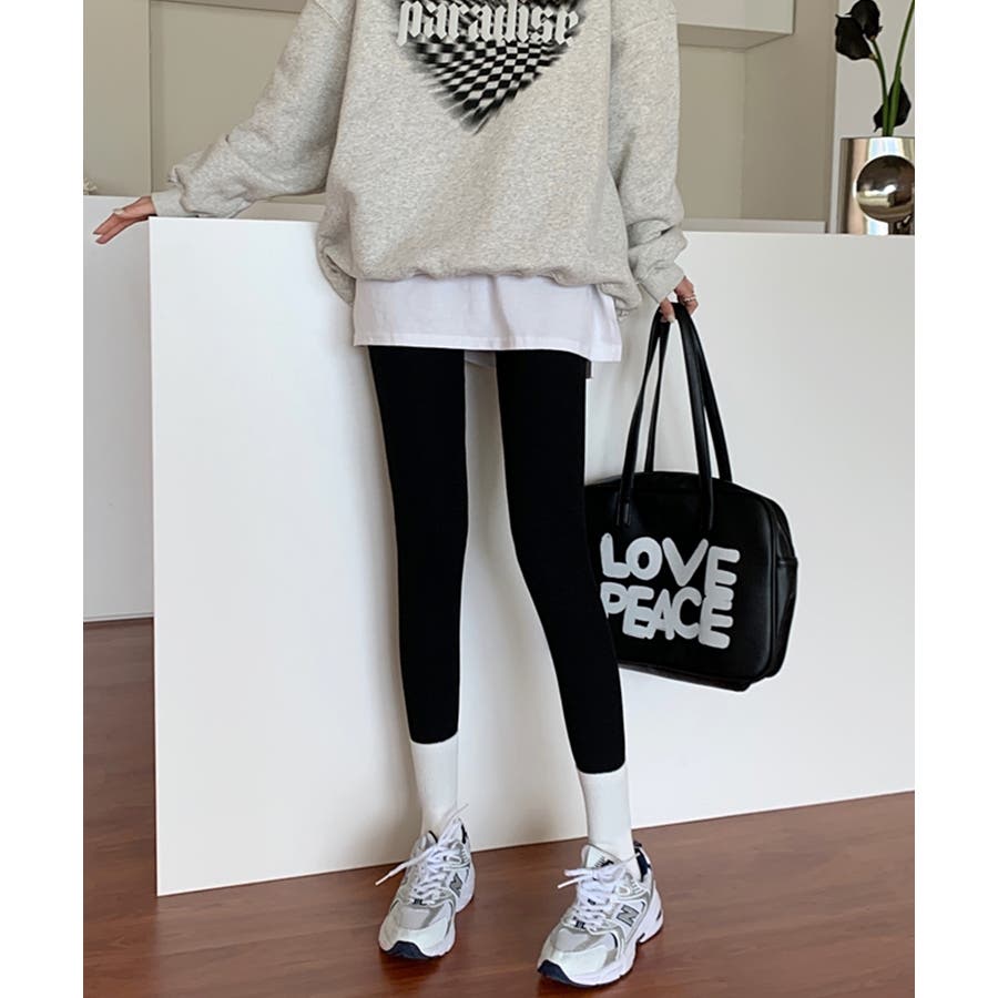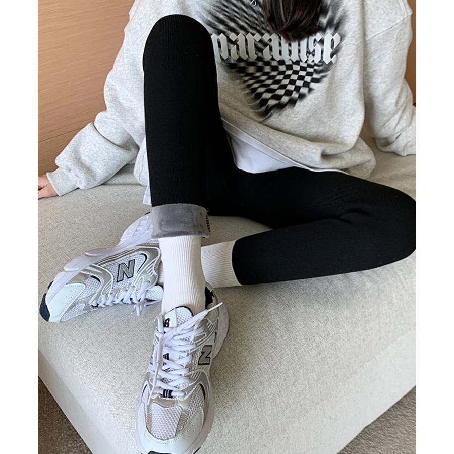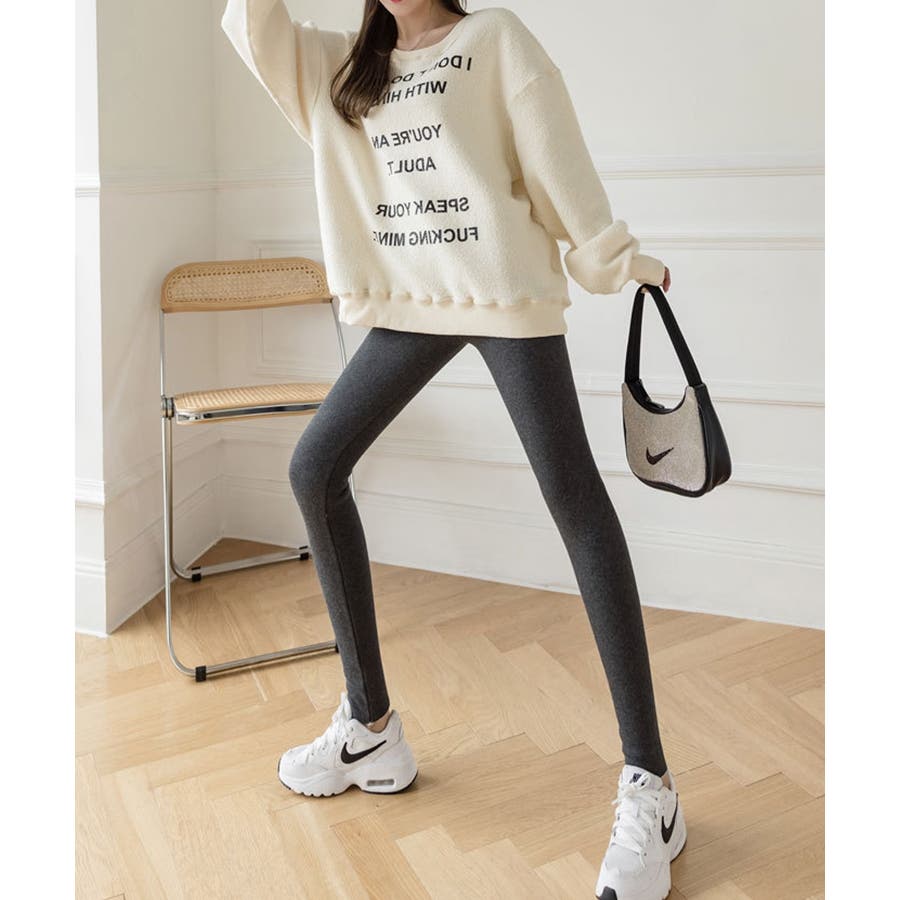 秋冬にうれしい裏毛起毛。シルクのようなやわらかい風合いもプラスされて最高な履き心地を実現しています。ルームウェアとしてもおでかけにも便利なリブレギンスです。レギンスならではのスリムシルエットなので、オーバーサイズのトレーナーやニット、ロングワンピース、ロングシャツなどと合わせると相性抜群です。ゆったりしたトップスにぴったりフィットのバランスは着やせ効果も大。