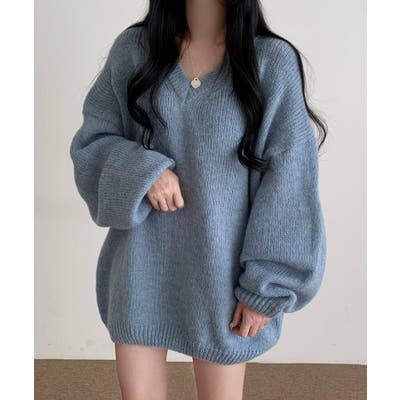 オーバーサイズVネックニットプルオーバー