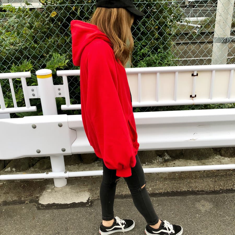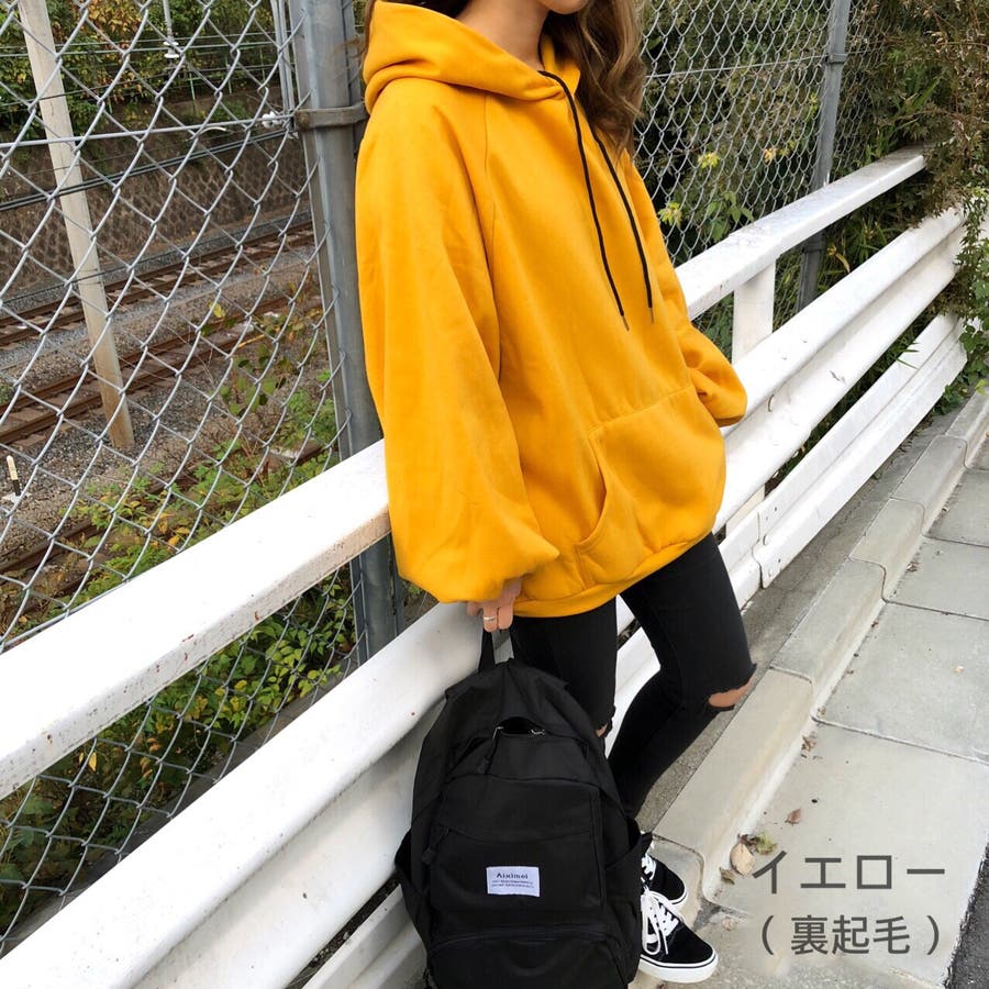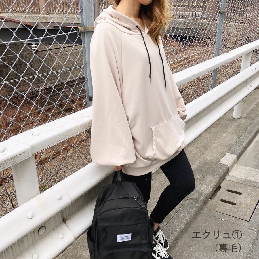 少し肌寒くても一枚で大丈夫な感じの裏起毛でゆったり着れてお尻まで隠せるの嬉しい