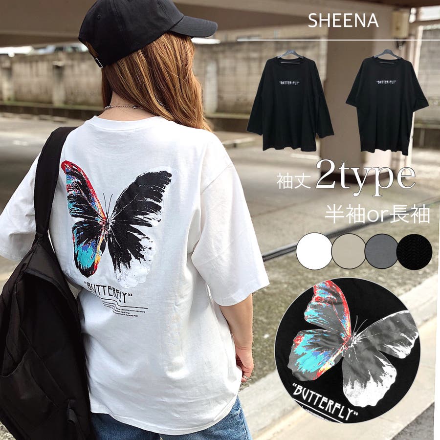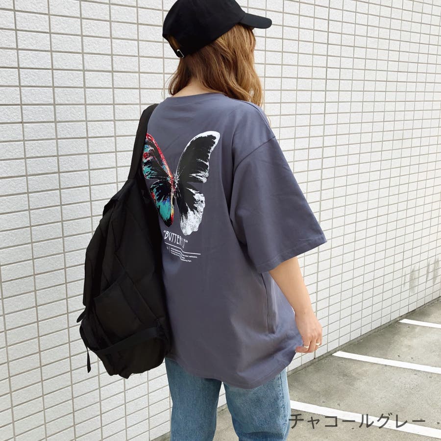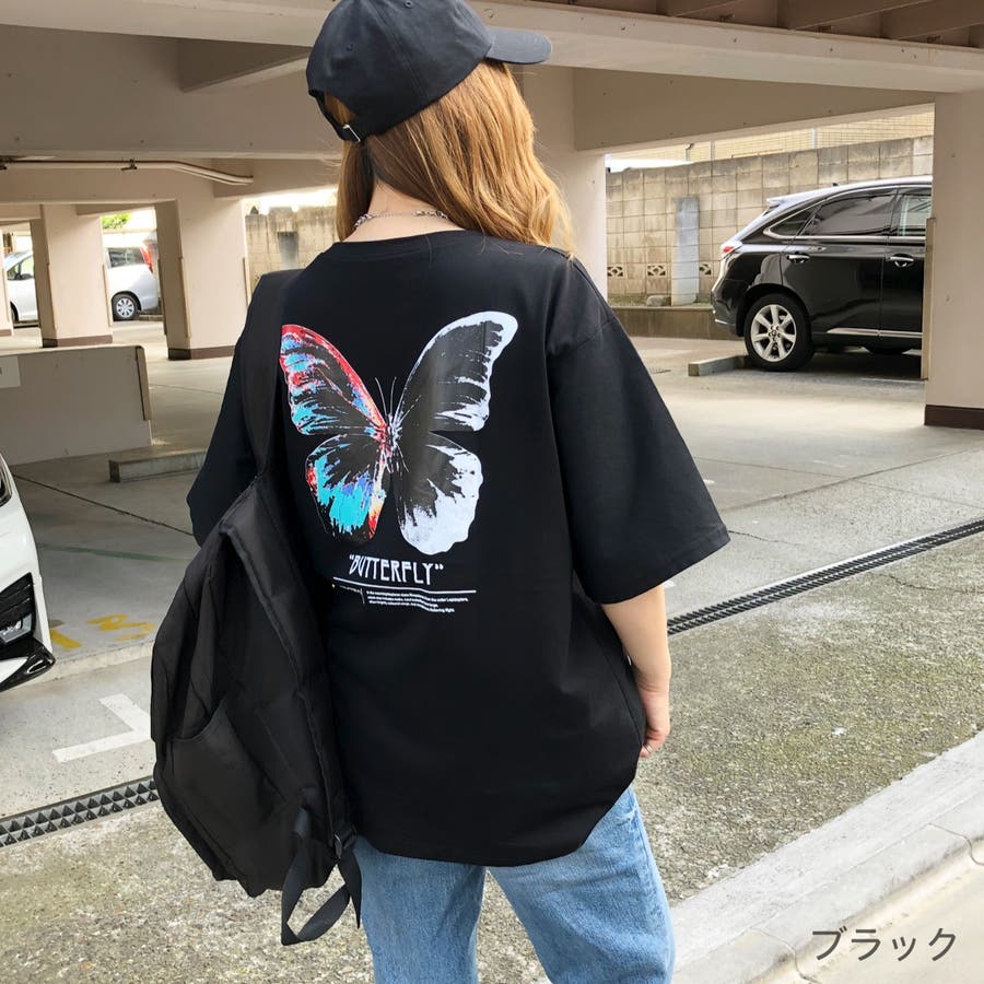 バタフライプリントルーズTシャツ ロンT 韓国ファッション